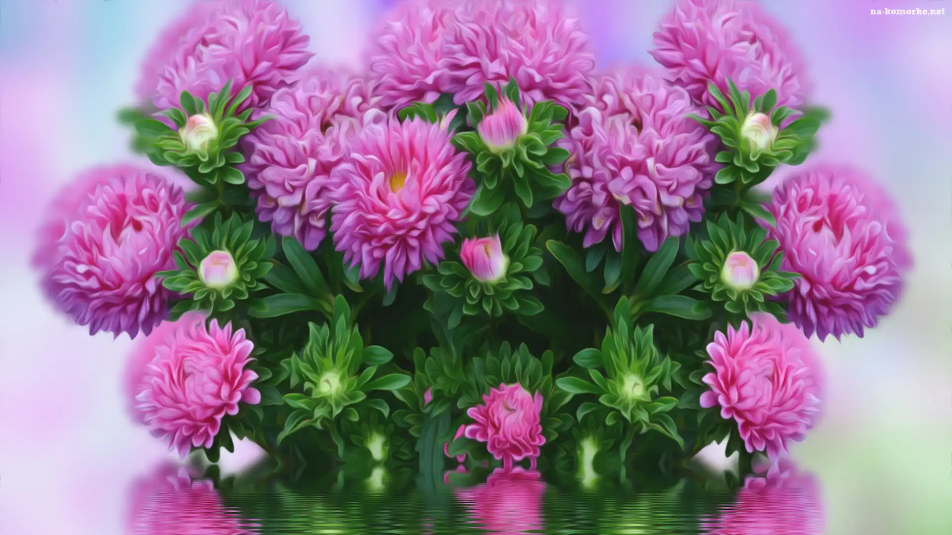 Różowe, Odbicie, Kwiaty, Woda na Komórkę