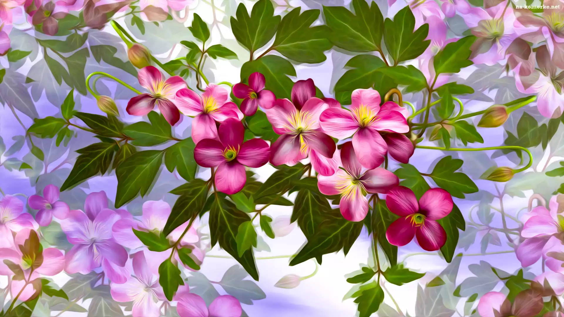 Różowe, Kolorowe tło, Kwiaty, Grafika na Komórkę