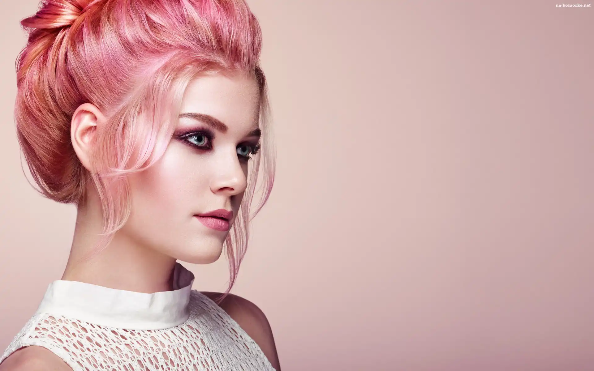 Różowe, Twarz, Kobieta, Włosy, Makijaż, Upięte na Komórkę