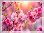 Kwiaty, Drzewo owocowe, Różowe, Listki, Gałązka, Wiśnia na Komórkę