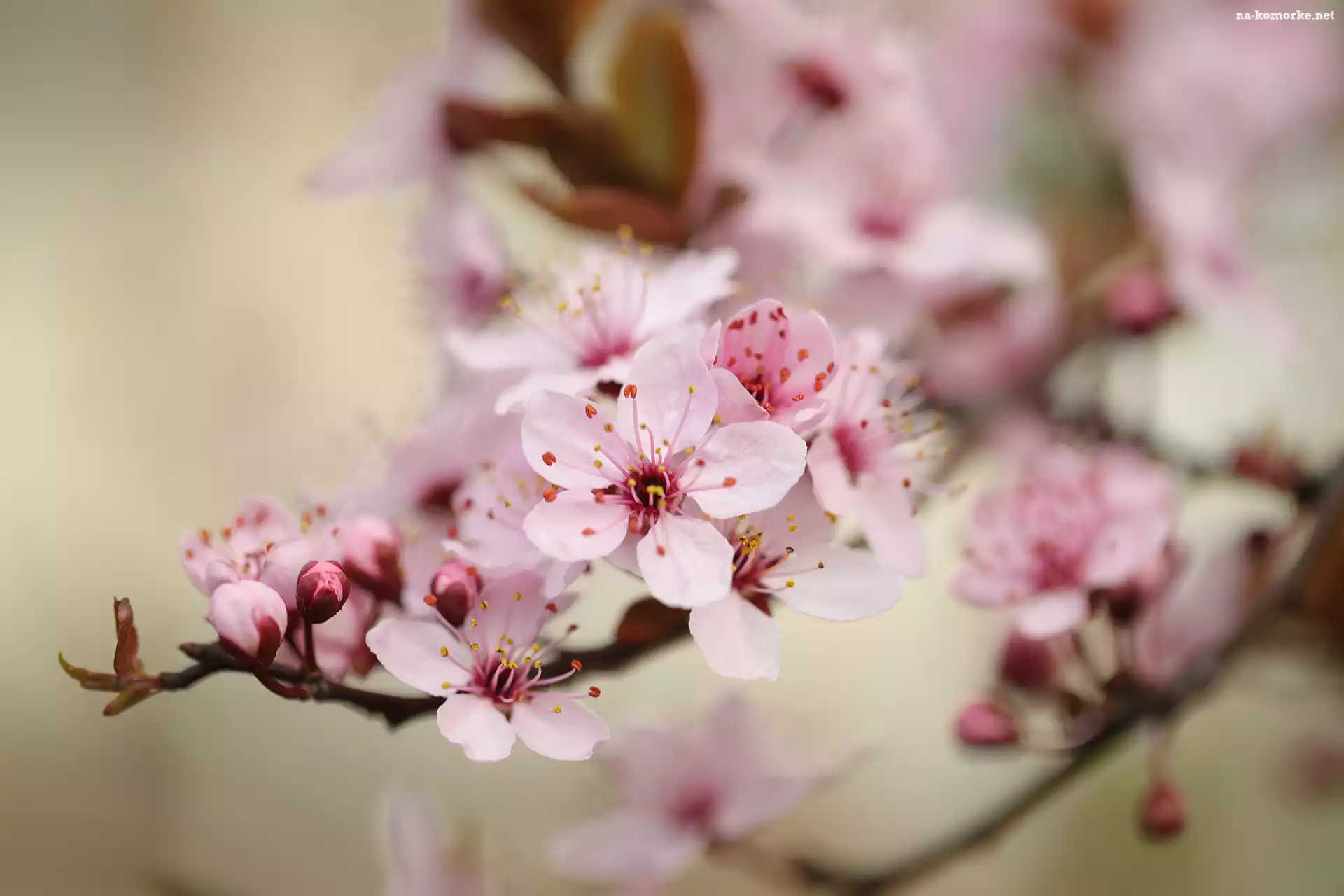 Różowe, Okwiecona, Gałązka, Drzewo owocowe, Kwiaty na Komórkę