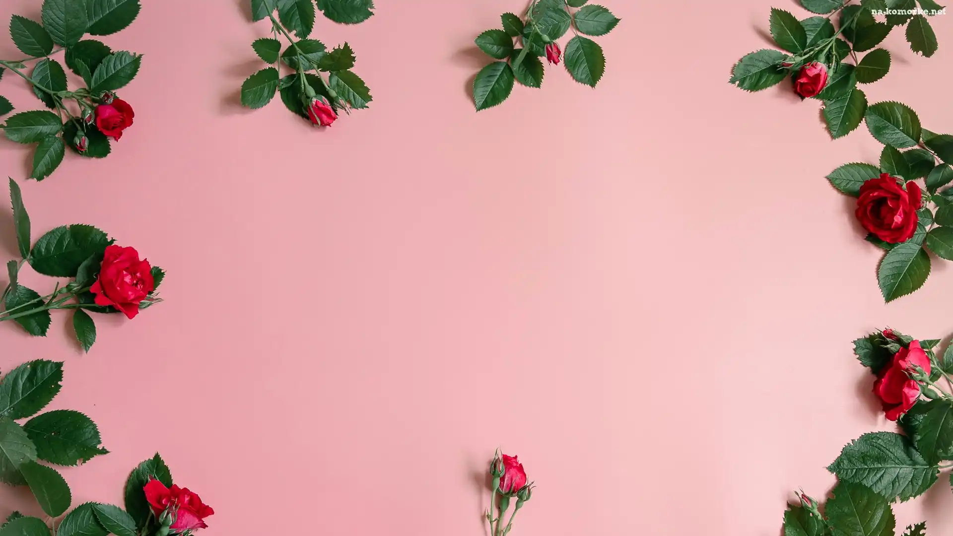 Różowe tło, Kwiaty, Czerwone, Róże, Liście na Komórkę
