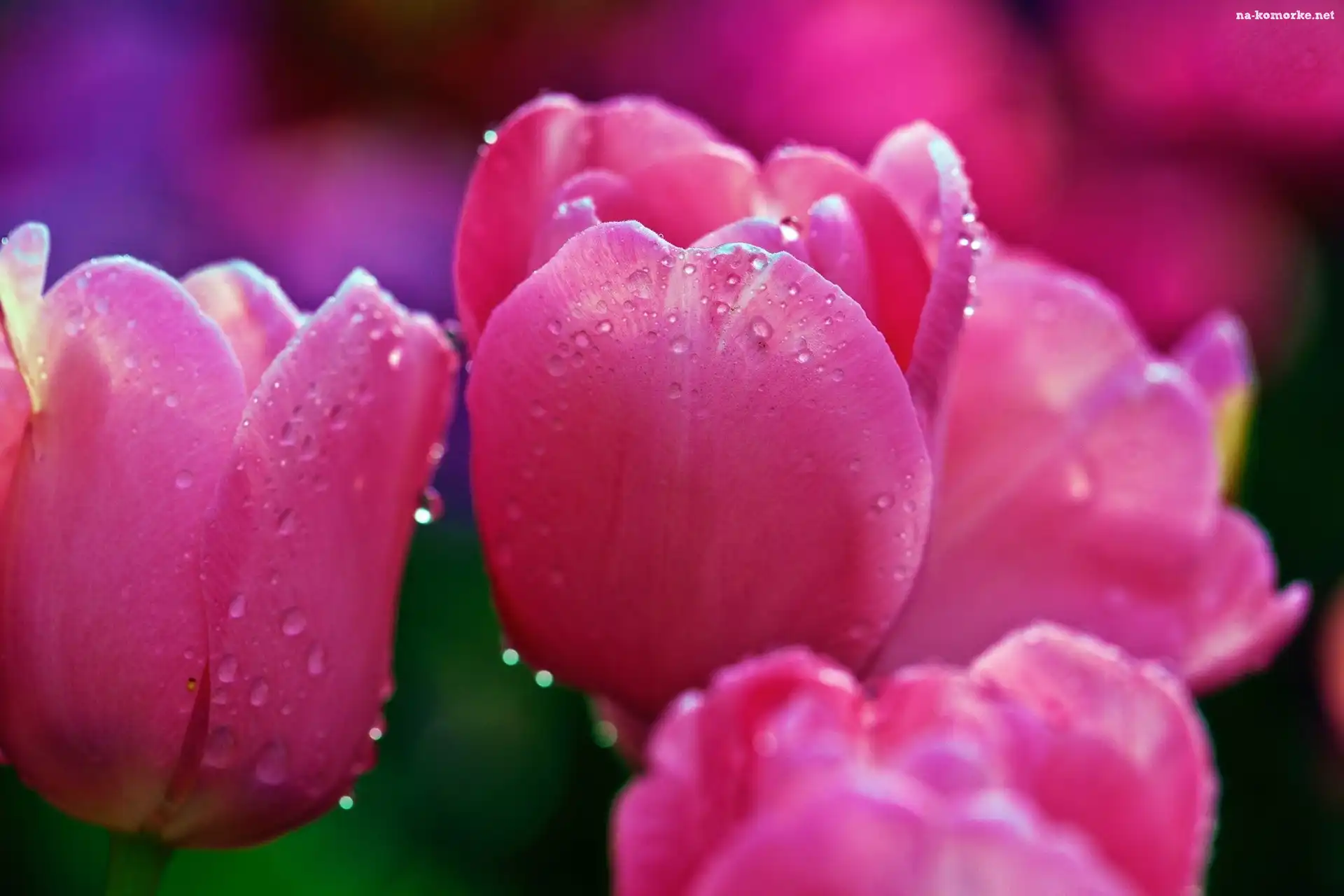 Różowe, Rosy, Tulipany, Krople na Komórkę