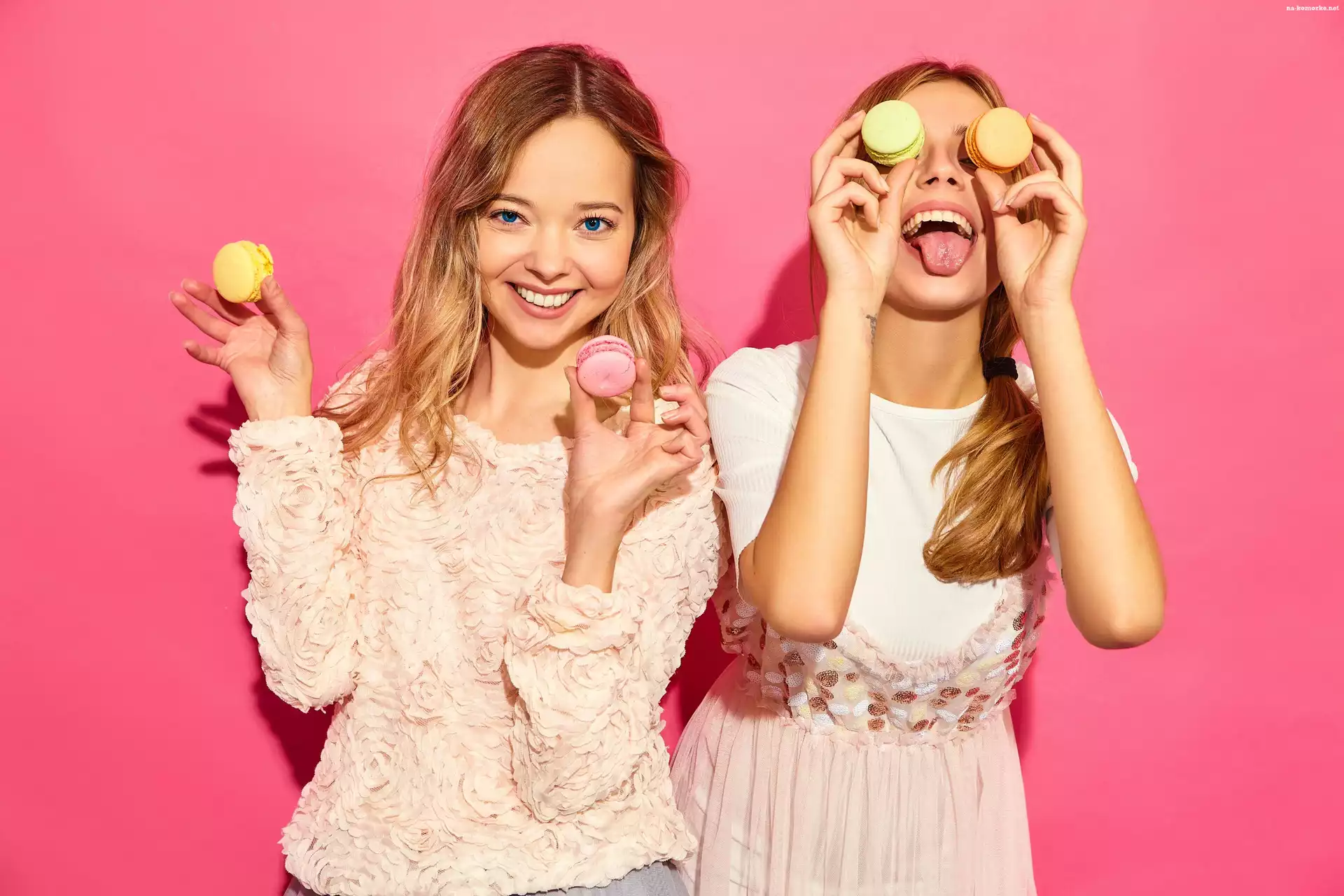 Uśmiechnięte, Różowe, Tło, Dziewczyny, Kobiety, Ciasteczka, Makaroniki na Komórkę