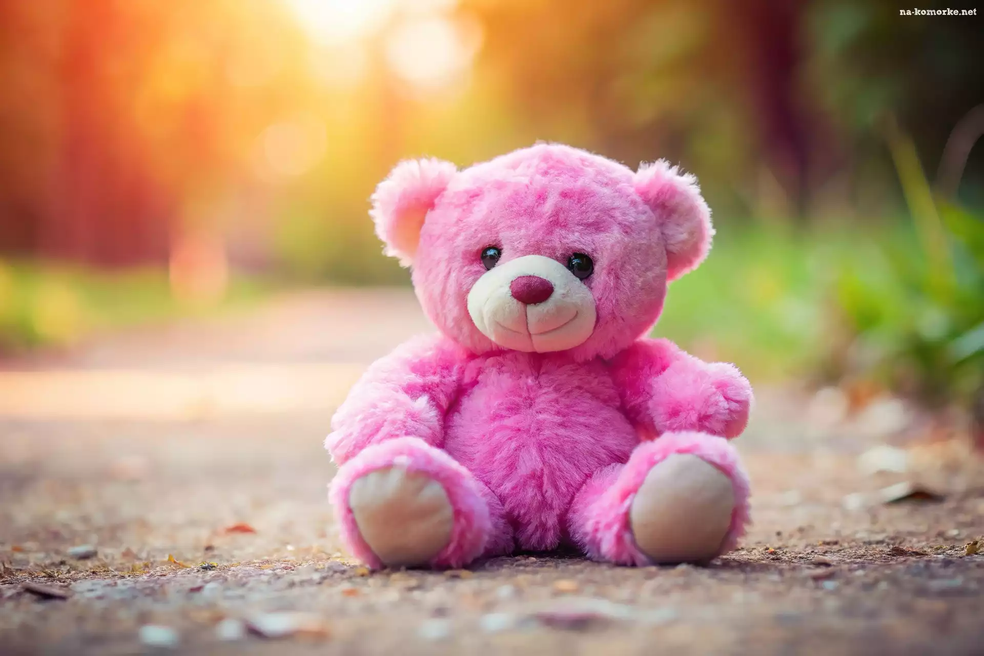 Pluszowy, Różowy, Droga, Miś, Grafika na Komórkę