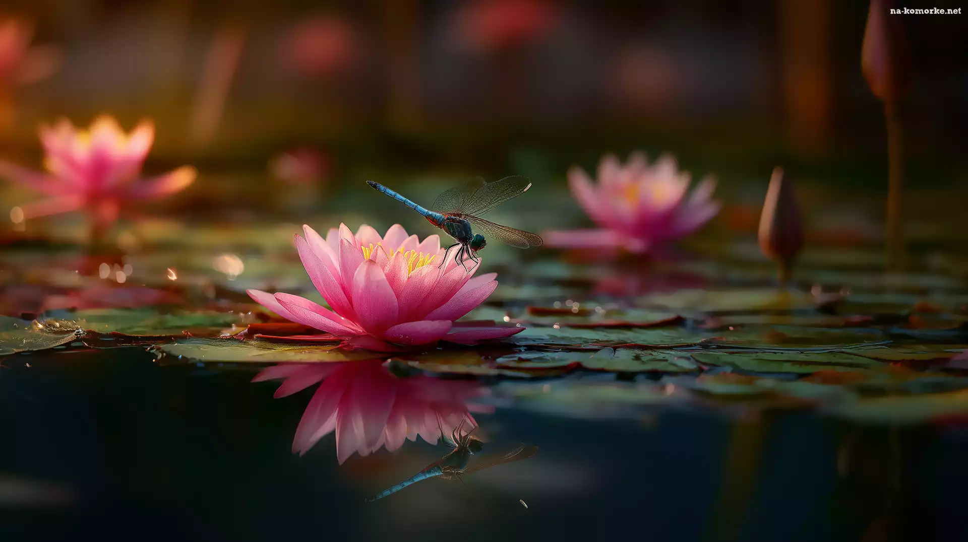 Owad, Lilia wodna, Ważka, Grafika AI, Kwiat, Różowy na Komórkę