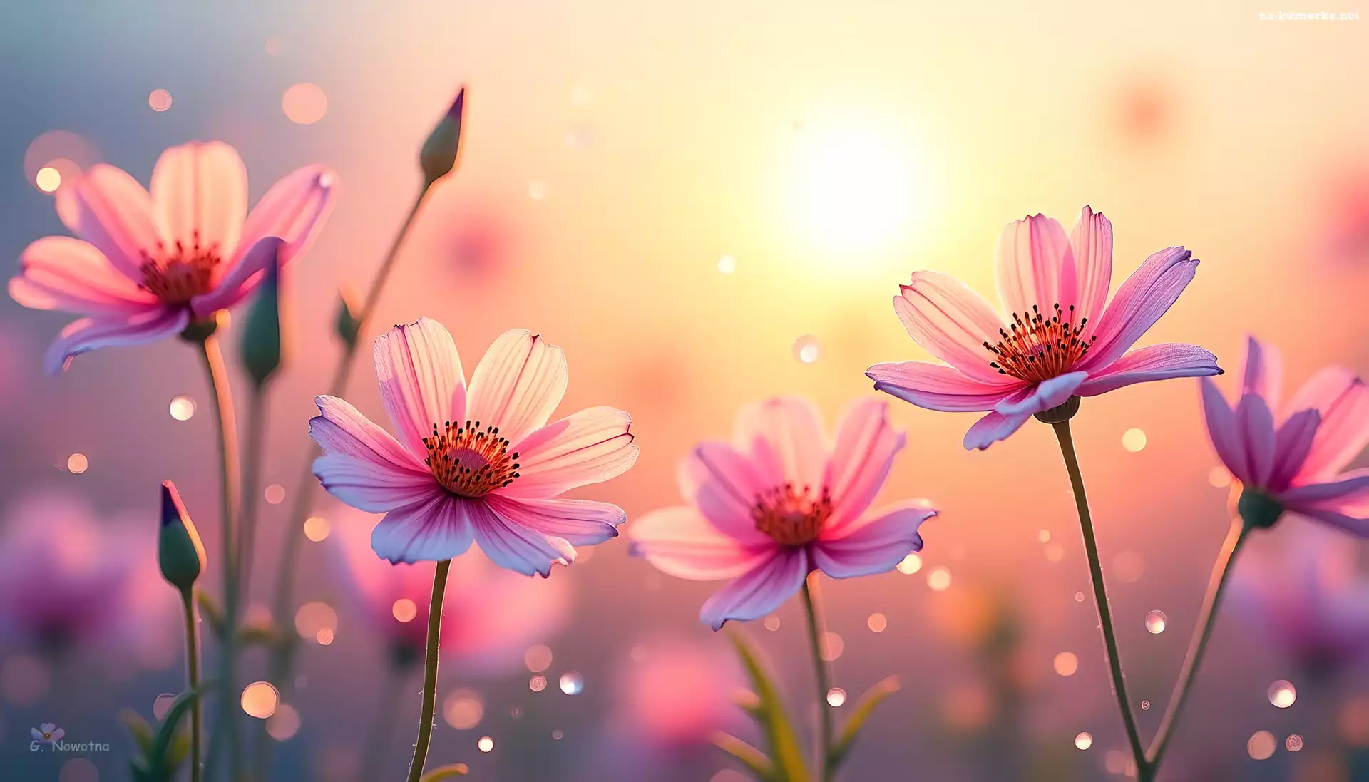 Różowe, Rozświetlone, Niebo, Kwiaty, Grafika na Komórkę