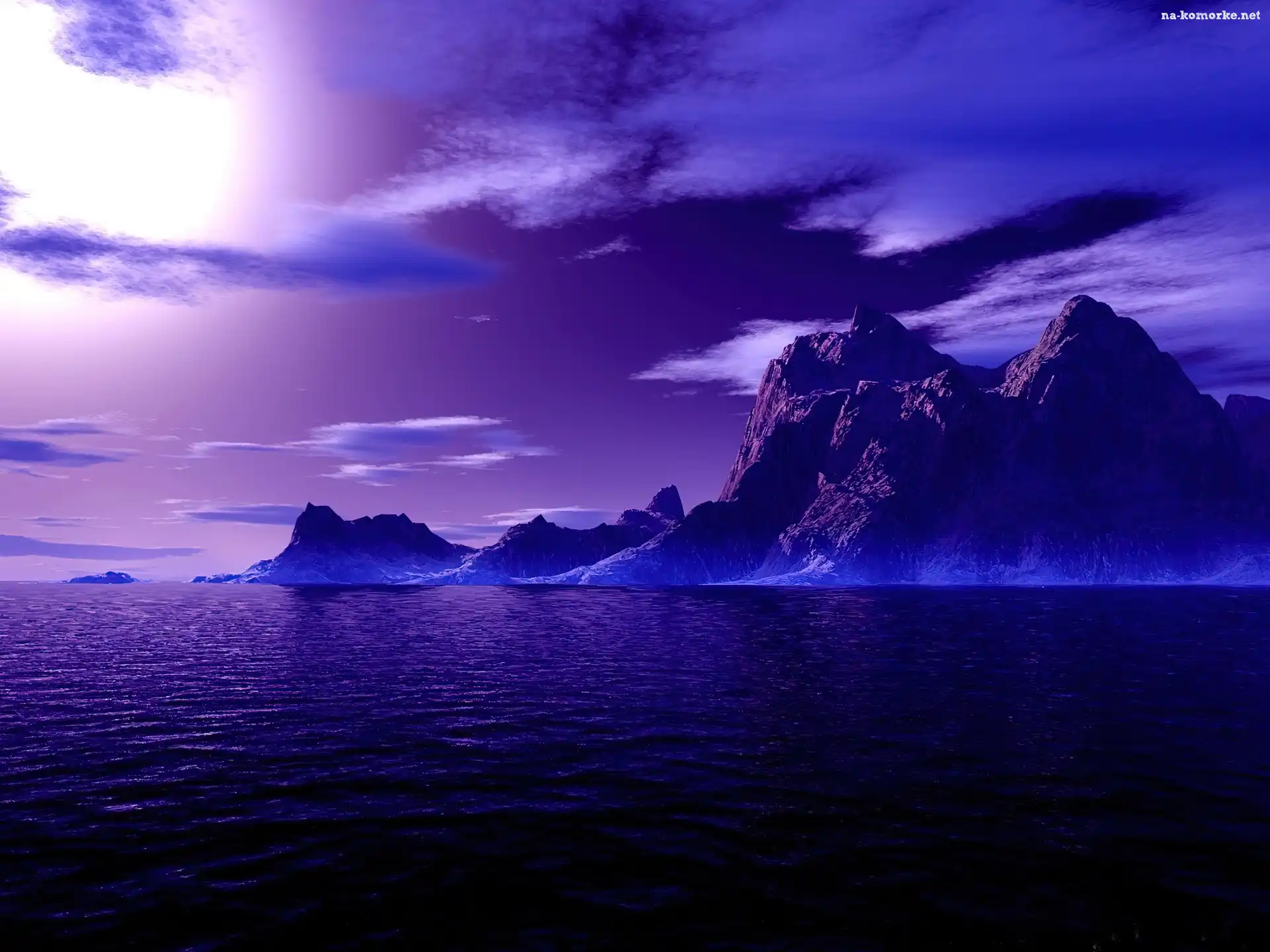 Rozświetlone, Górzyste, Morze, Księżyca, Wyspy, Światłem na Komórkę