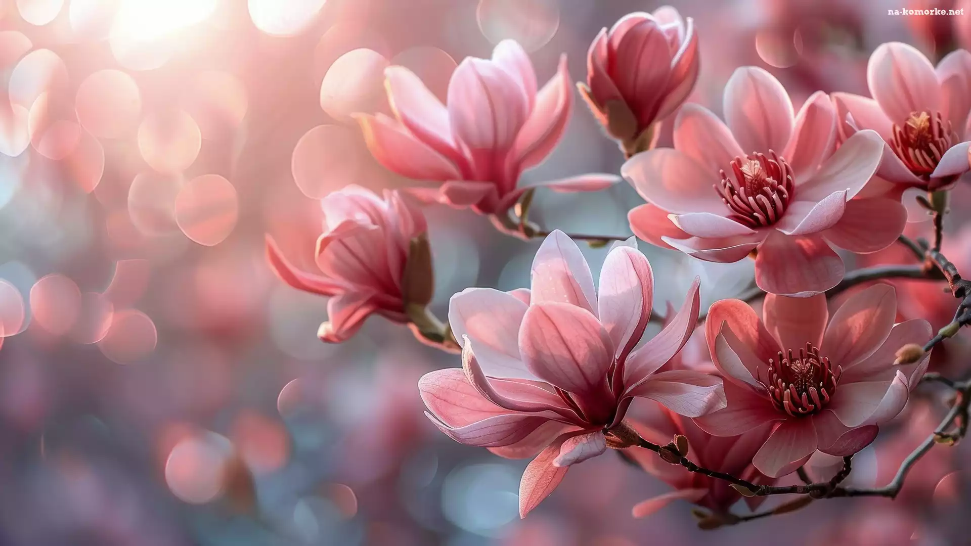 Magnolia, Rozwinięte, Różowe, Gałązki, Kwiaty na Komórkę
