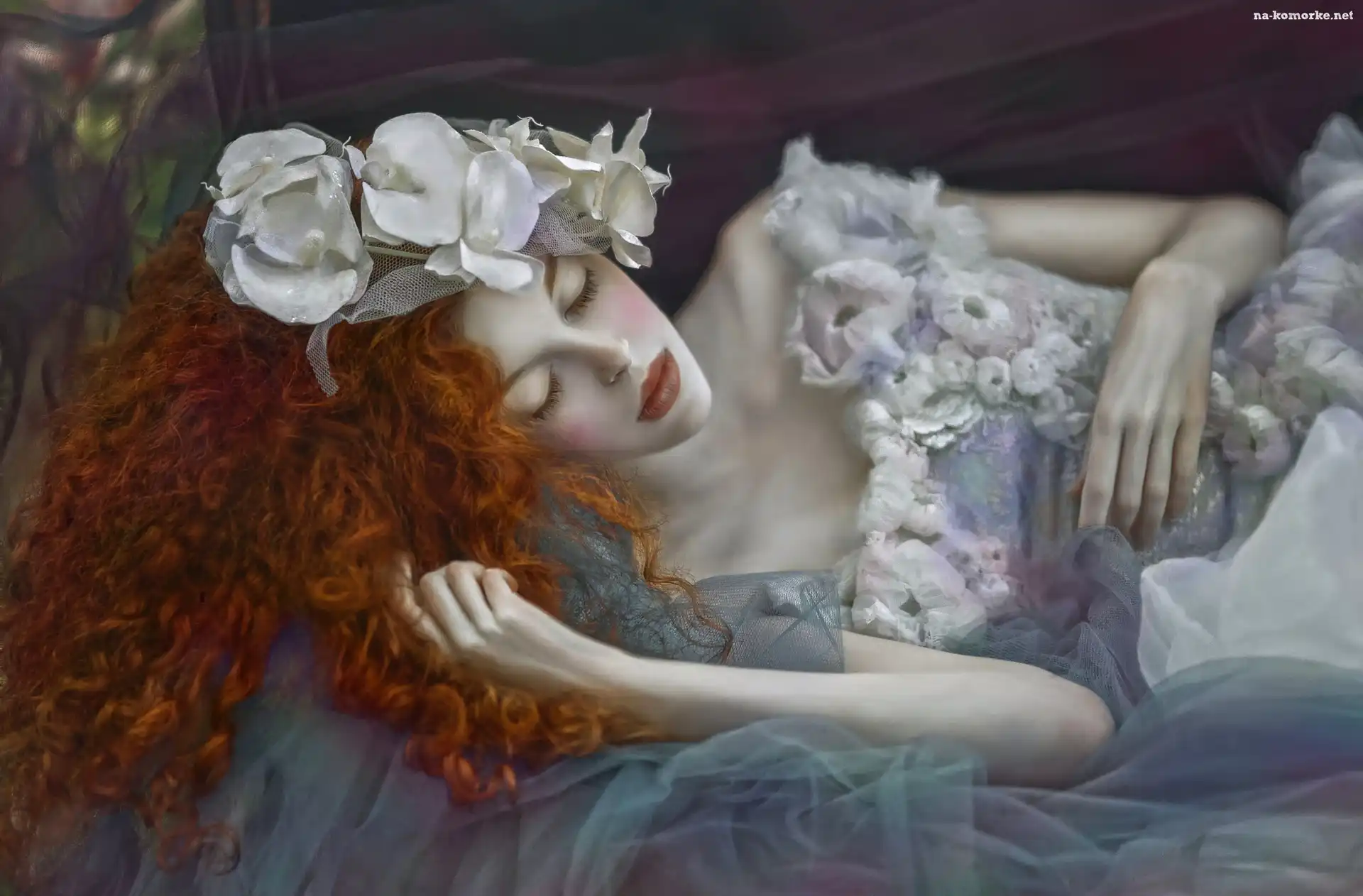 Śpiąca, Rudowłosa, Kobieta na Komórkę