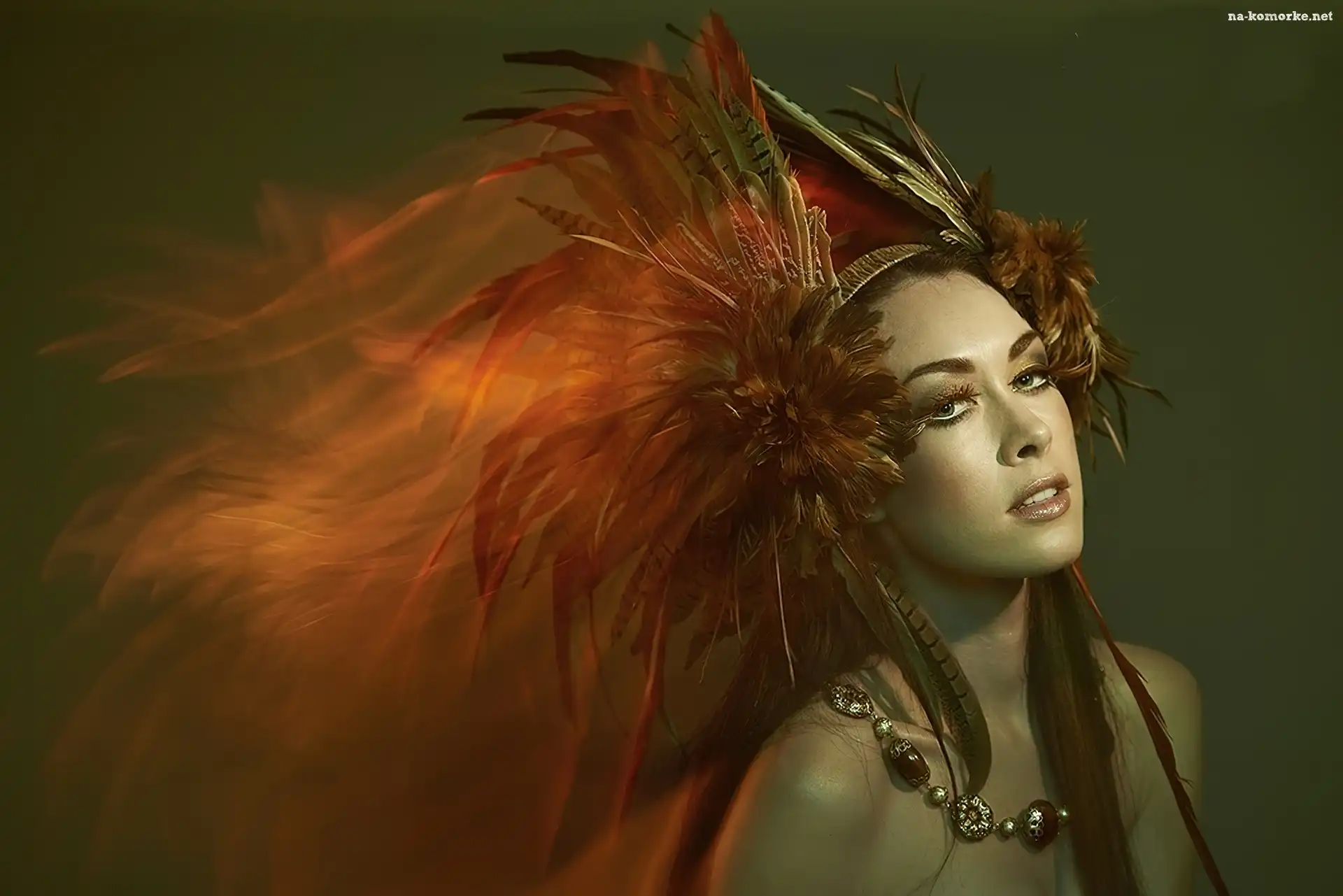 Kobieta, Rudy, Pióropusz na Komórkę