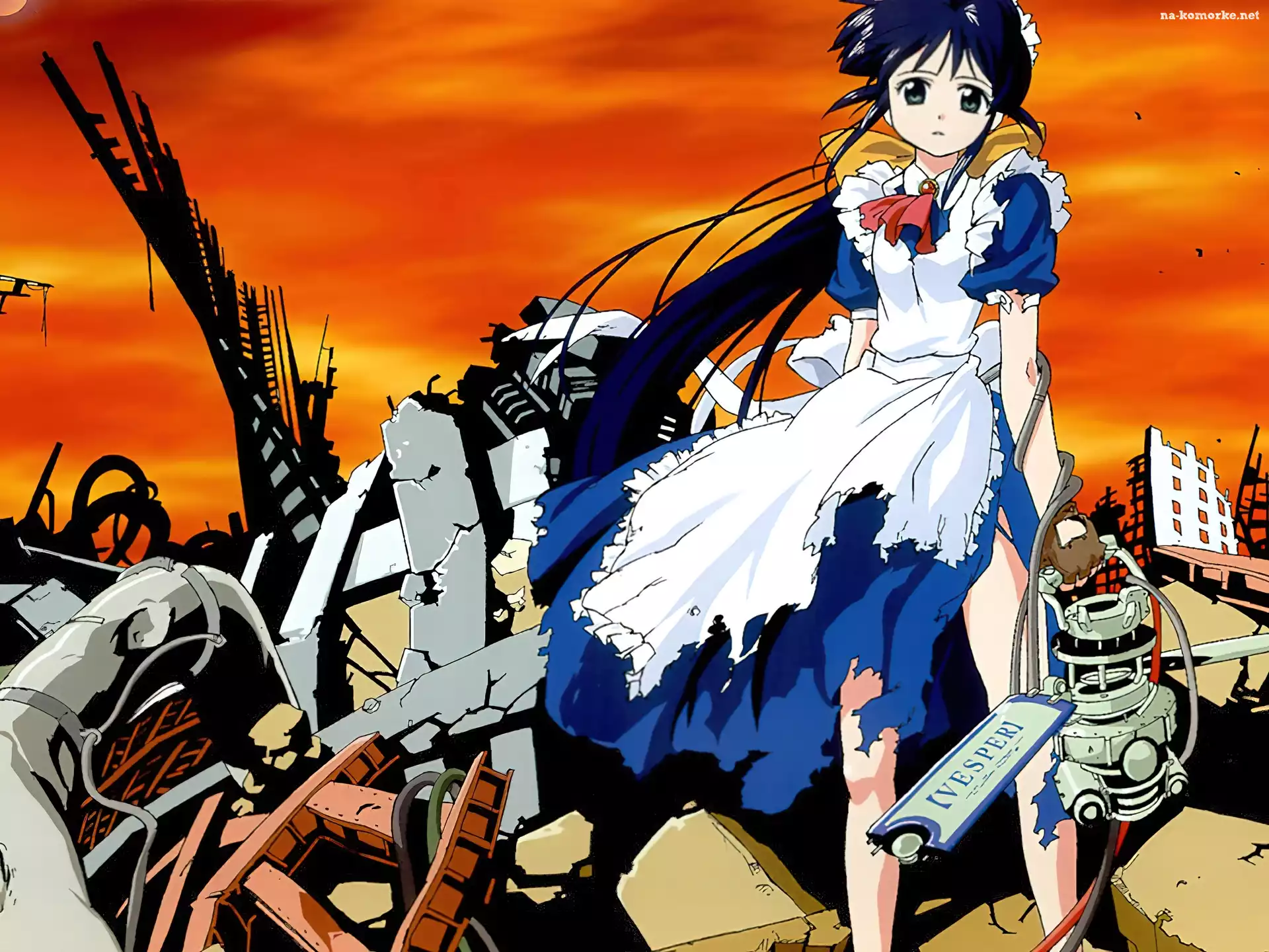 Mahoromatic, kobieta, ruiny na Komórkę