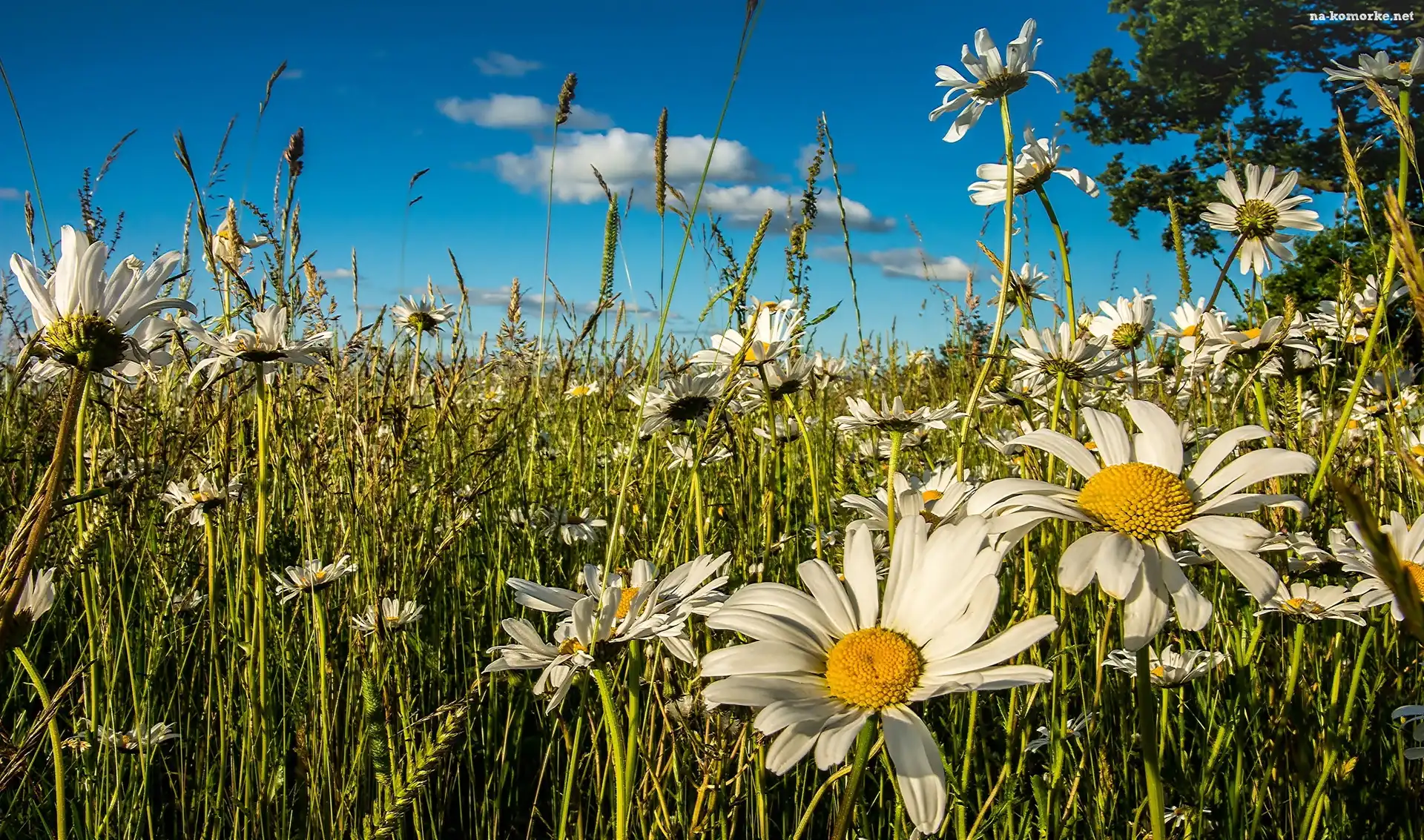 Rumianki, Lato, Łąka, Niebo na Komórkę