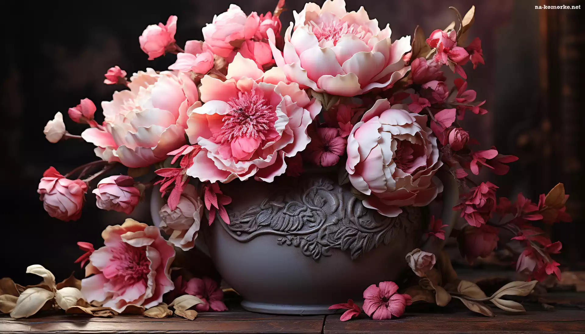 Różowe, Rustykalny, Wazon, Kwiaty, Grafika na Komórkę