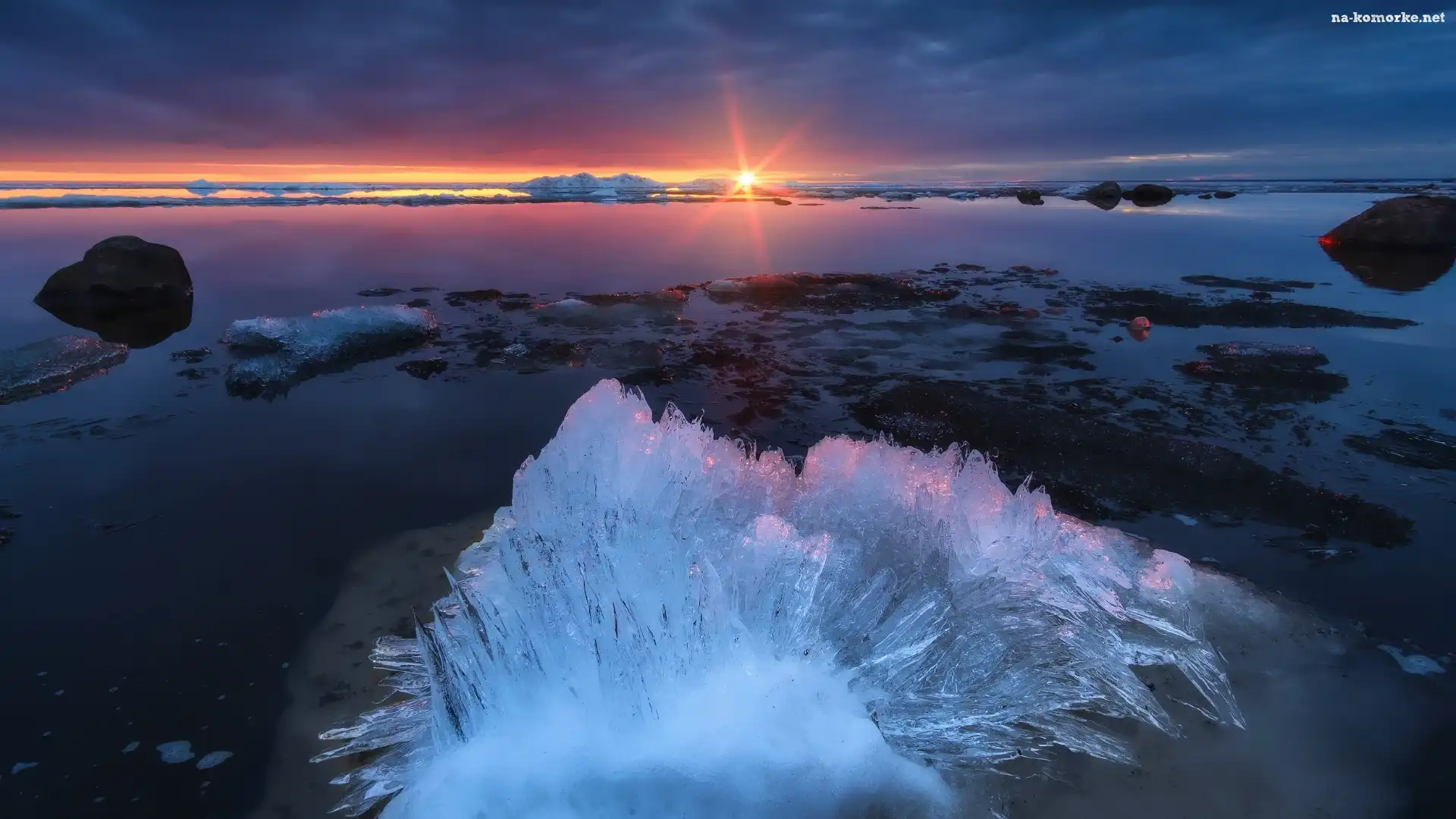 Lód, Obwód jarosławski, Rosja, Zima, Promienie słońca, Jezioro, Zbiornik Rybiński na Komórkę