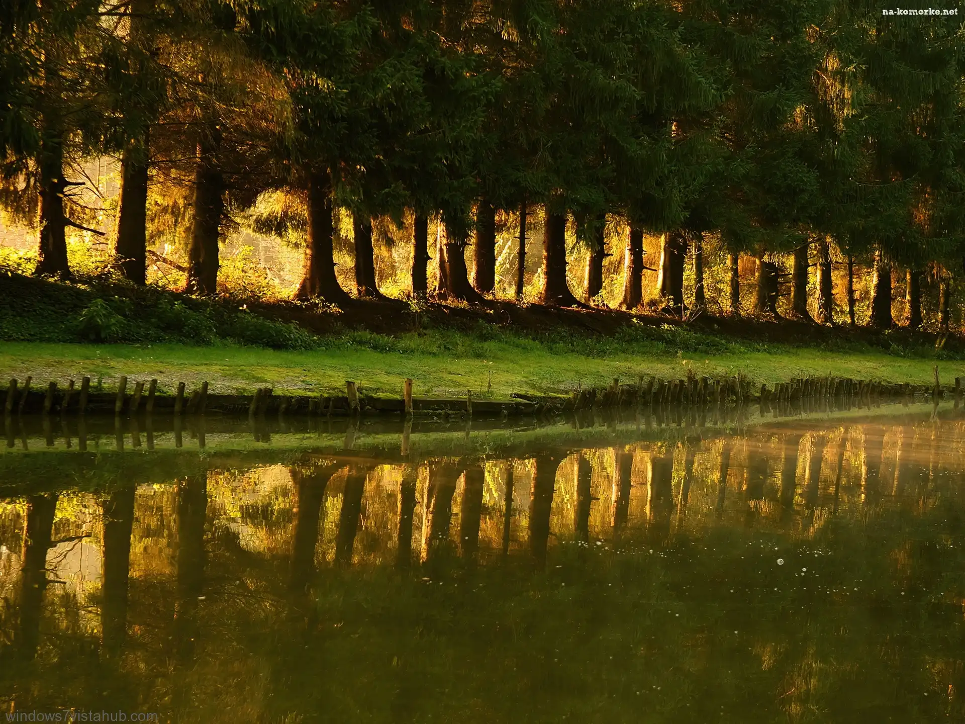 Rząd, Woda, Drzew, Odbicie na Komórkę