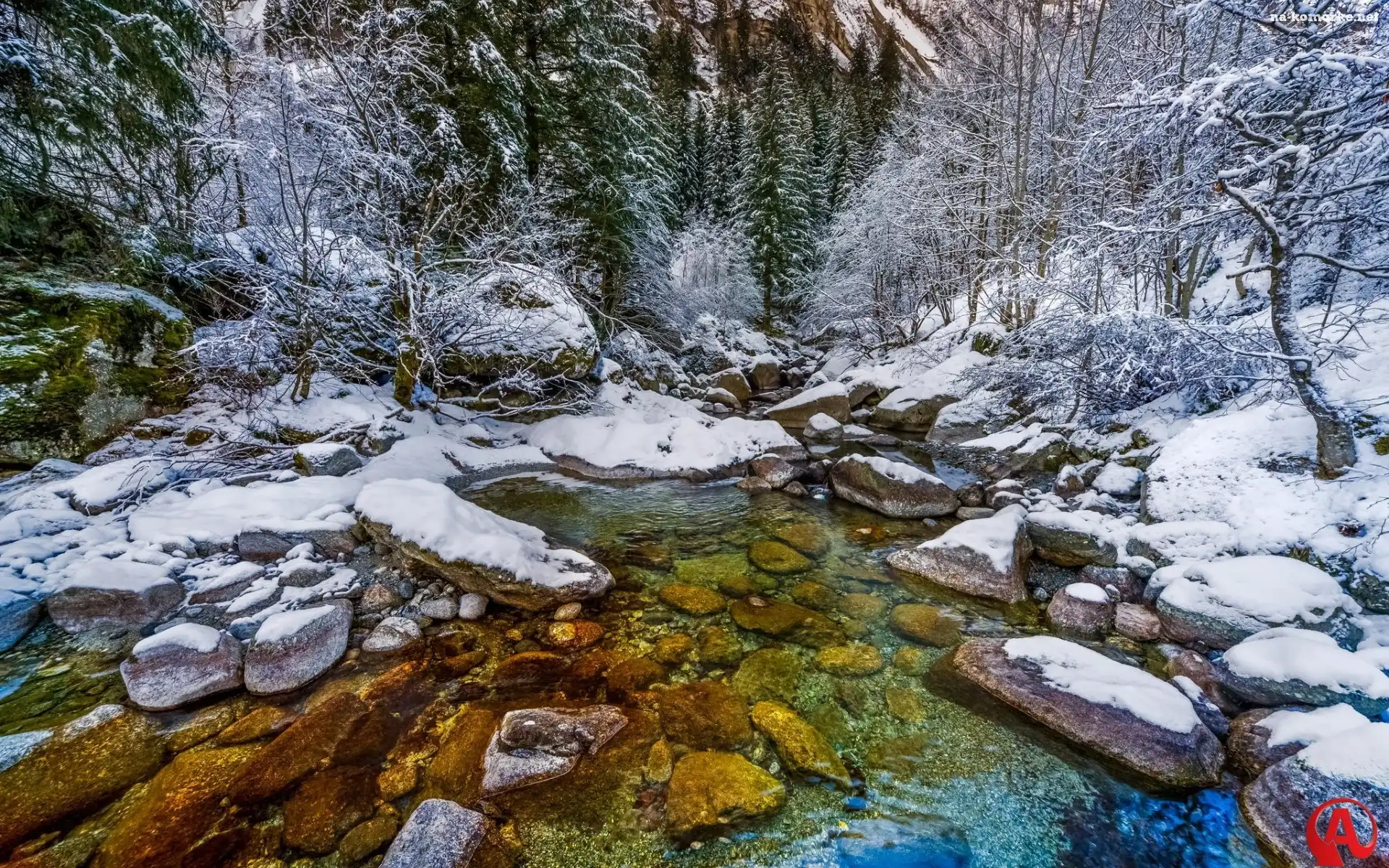 Rzeczka, Zima, Kamienie, Las na Komórkę