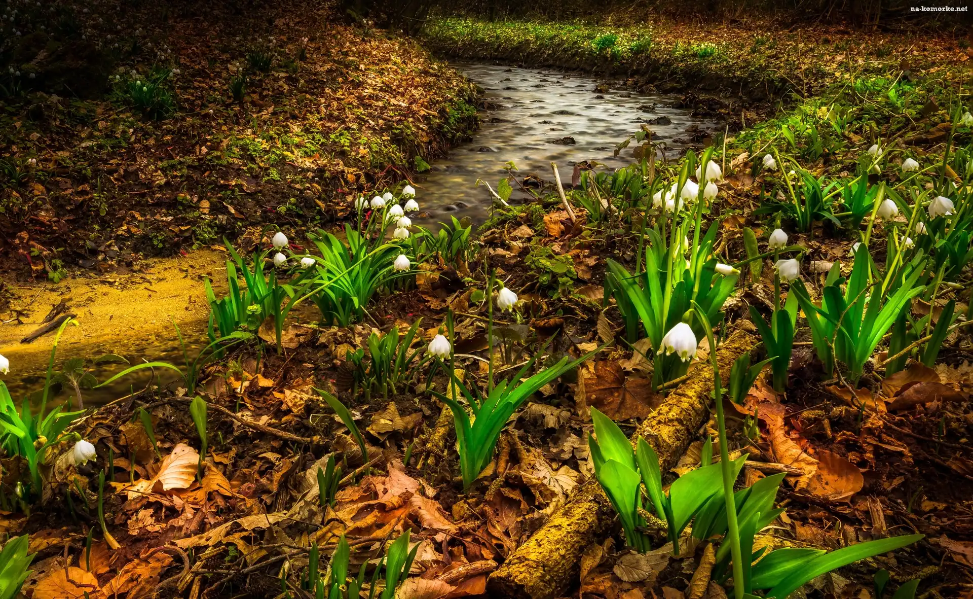 Rzeczka, Śnieżyce, Strumyk, Kwiaty na Komórkę