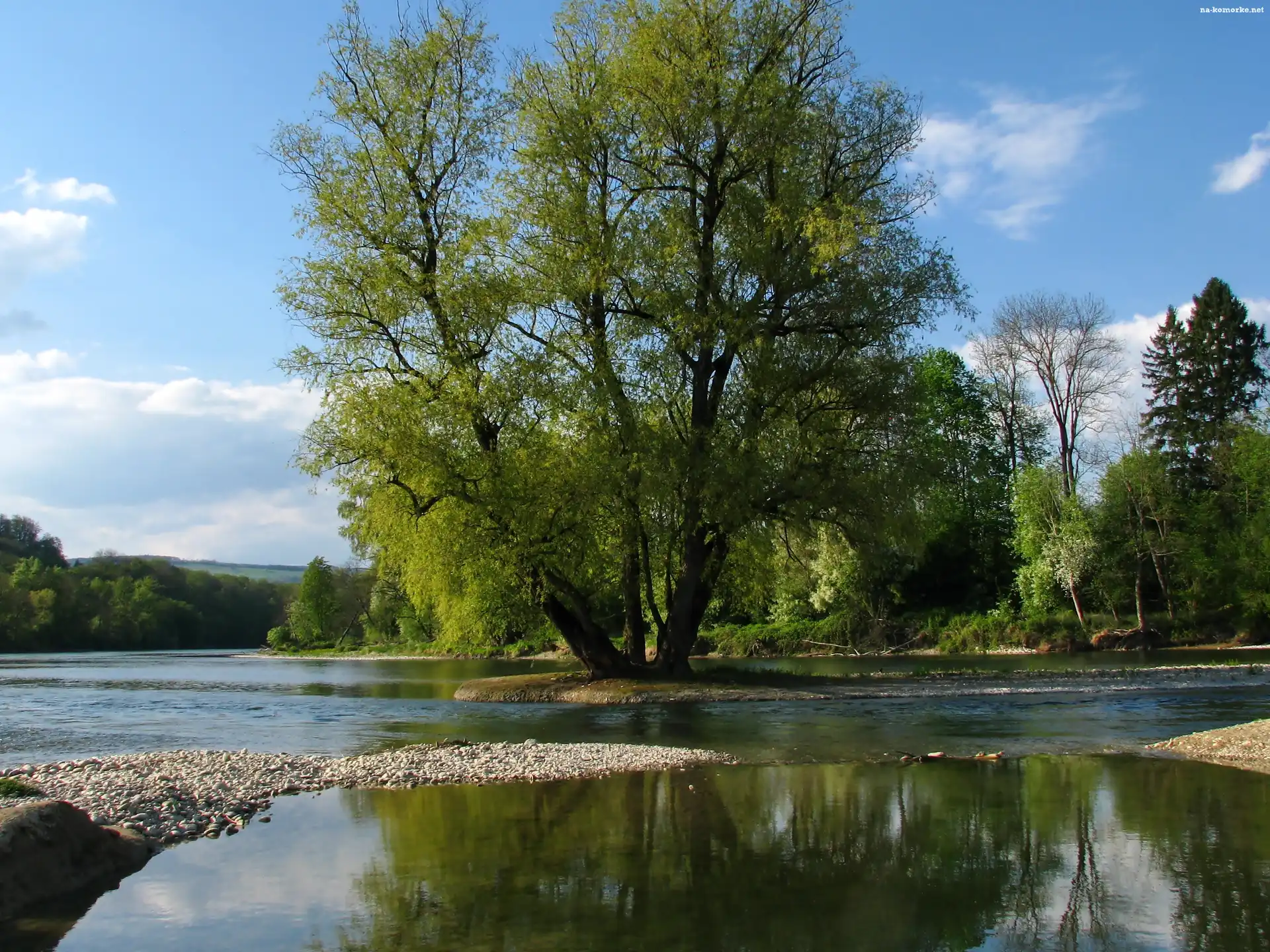 Rzeka, Drzewa, Aare, Szwajcaria na Komórkę