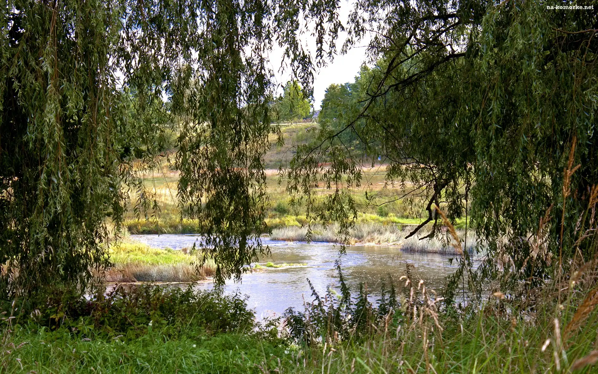Rzeka, Trawy, Łąki, Drzewa na Komórkę