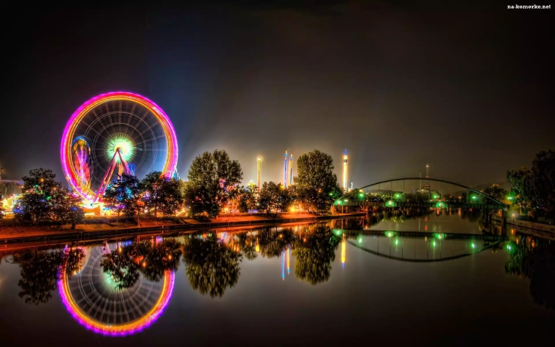 Rzeka, Noc, Światła, Diabelski, Młyn na Komórkę