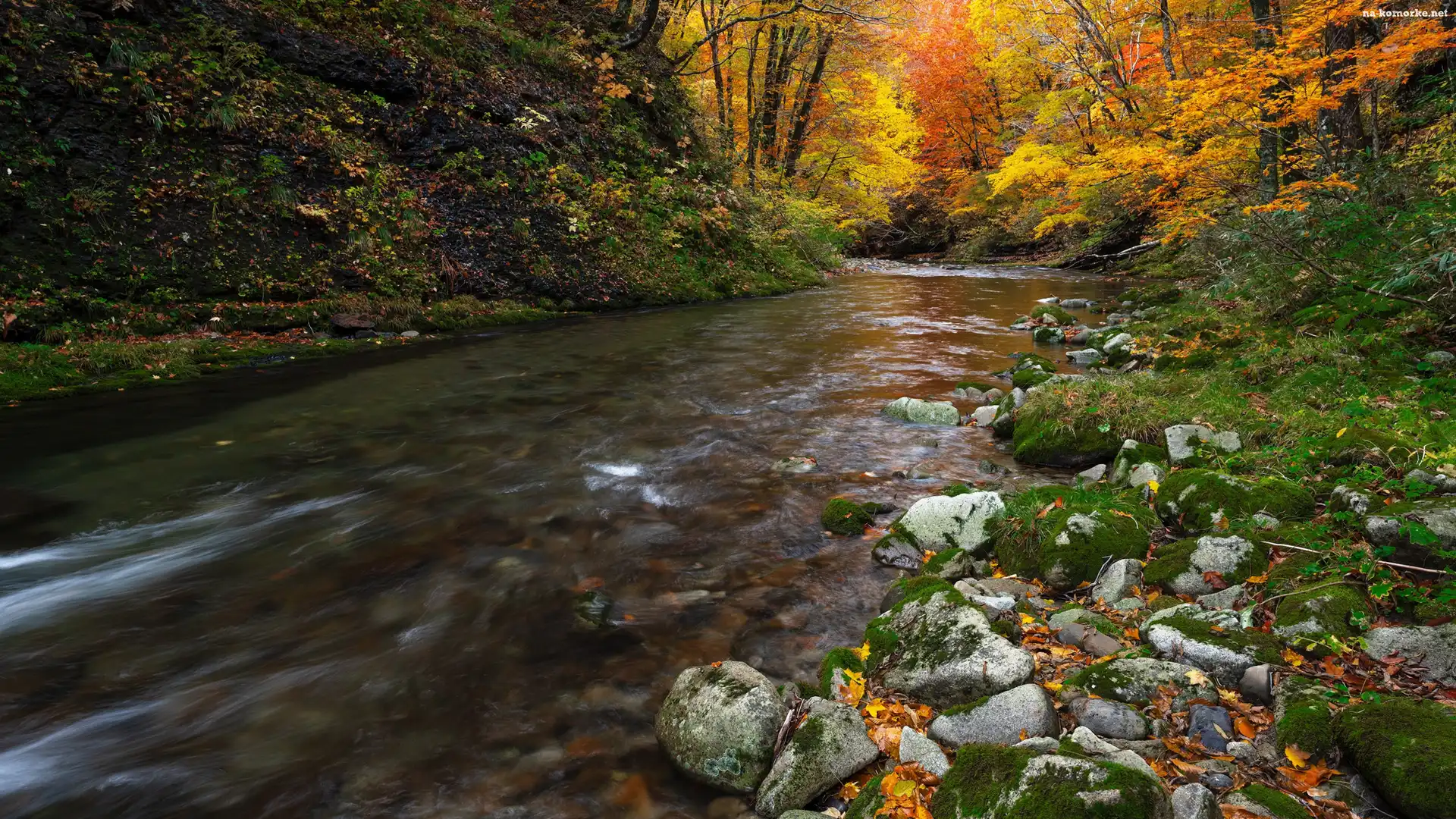 Rzeka, Jesienne, Las, Kamienie, Drzewa, Omszałe na Komórkę