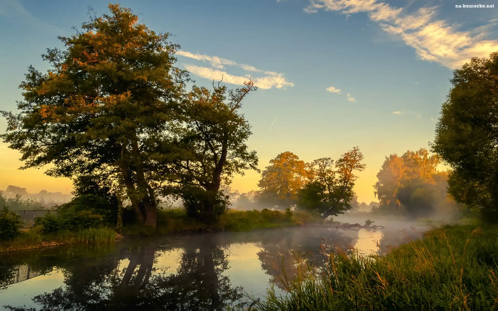 Rzeka, Mgła, Drzewa, Zarośla na Komórkę