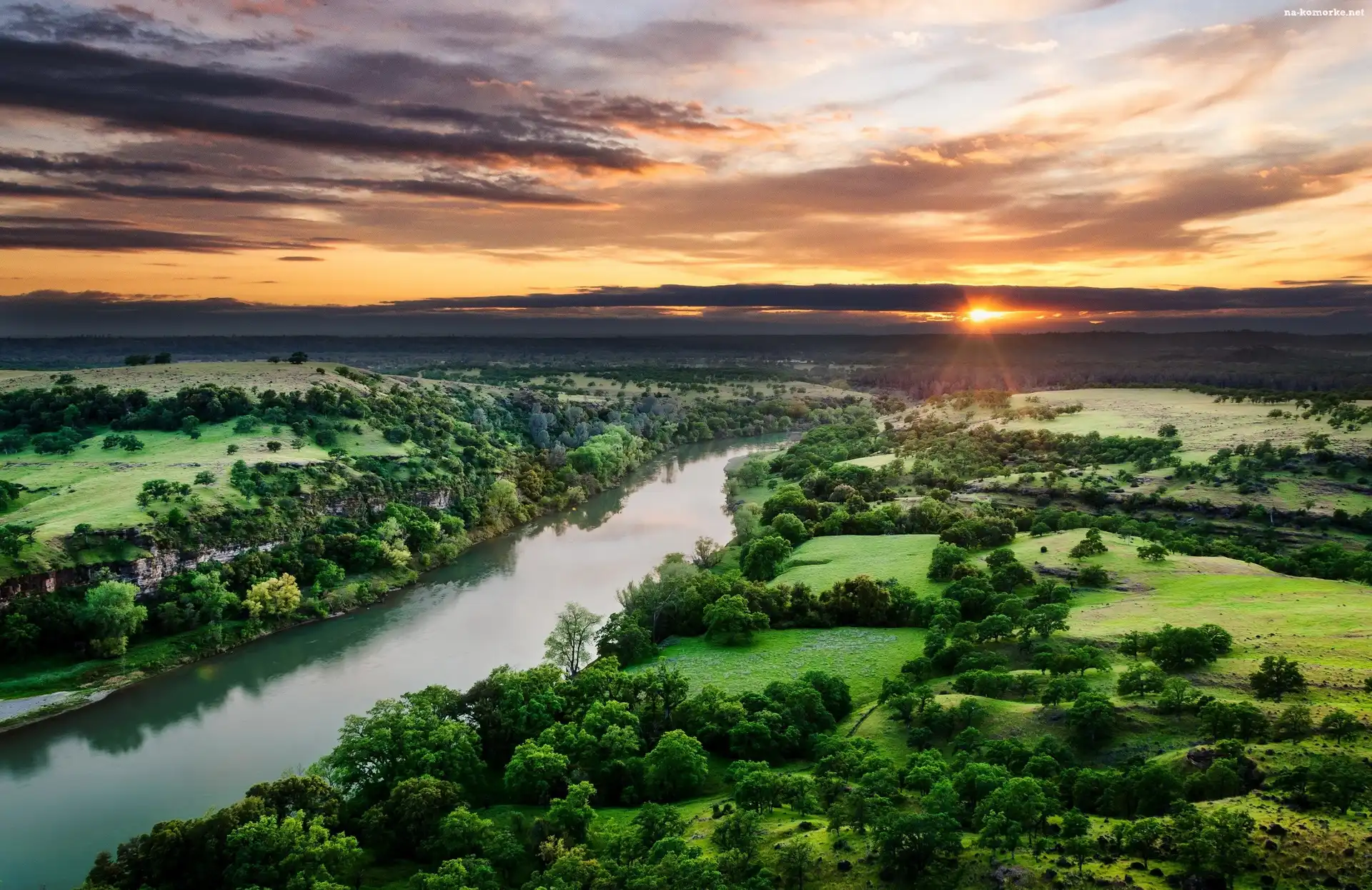 Rzeka, Słońce, Drzewa, Niebo na Komórkę