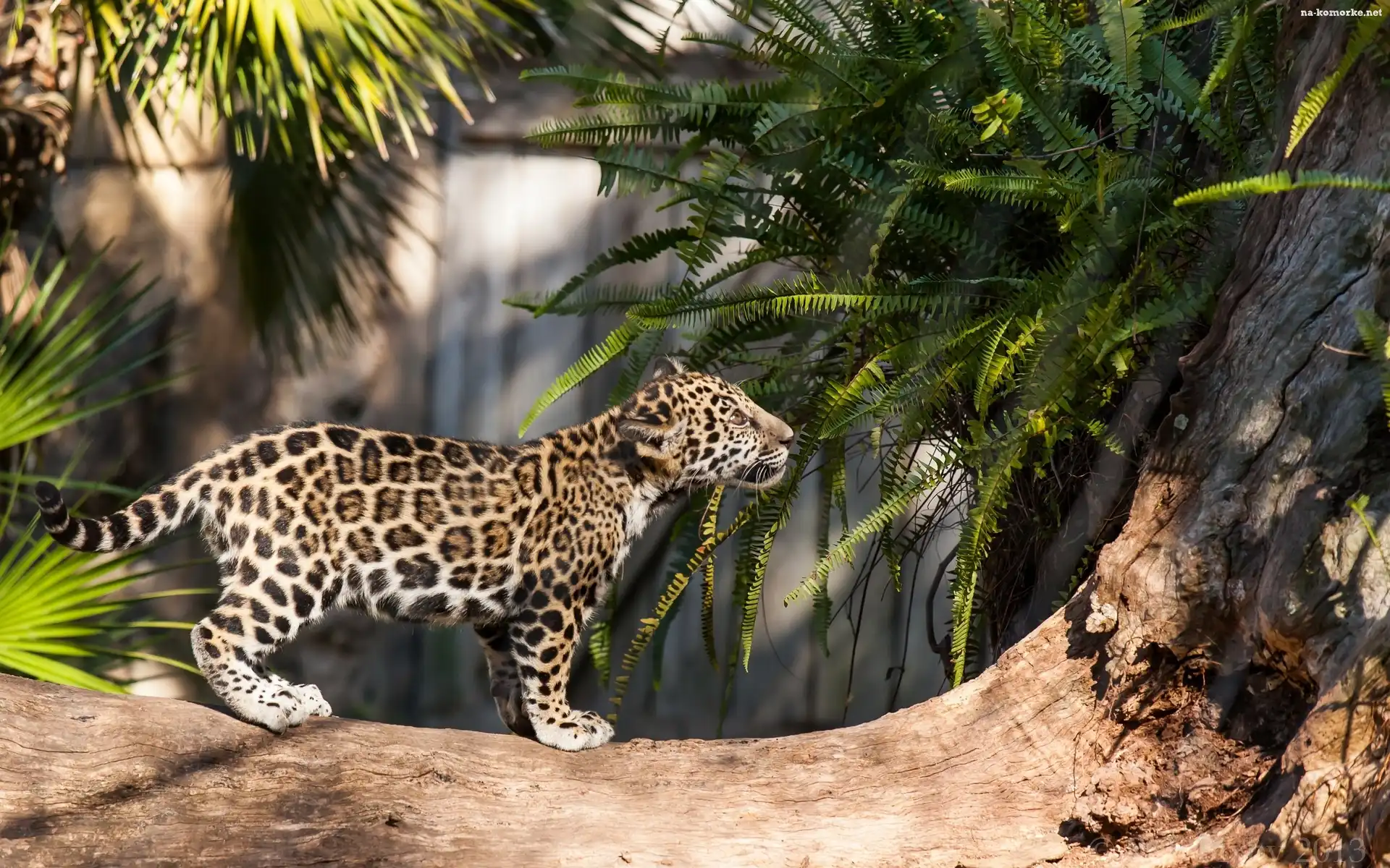 Rzeka, Młody, Lampart, Drzewo, Paprocie na Komórkę