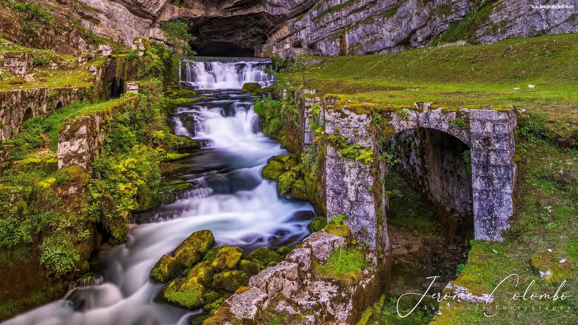 Francja, Kamienie, Skały, Roślinność, Burgundia, Rzeka Loue, Miejsce, Source de la Loue na Komórkę |