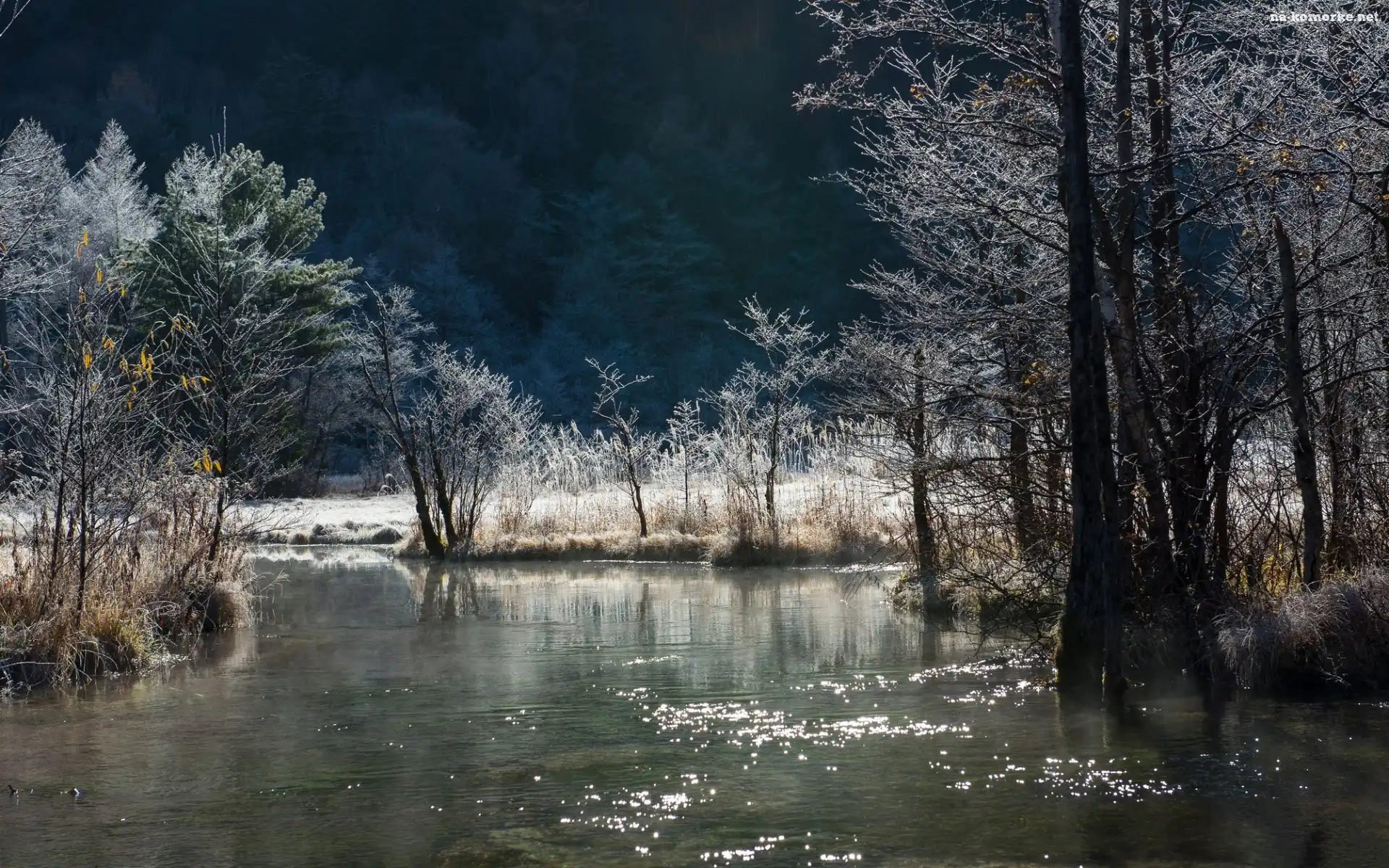 Rzeka, Zima, Góry, Lasy na Komórkę