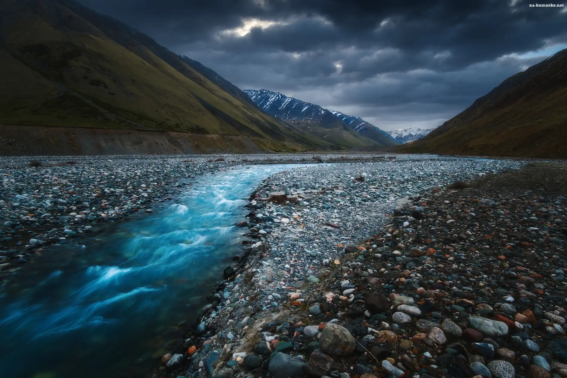 Rzeka, Chmury, Kamienie, Góry na Komórkę