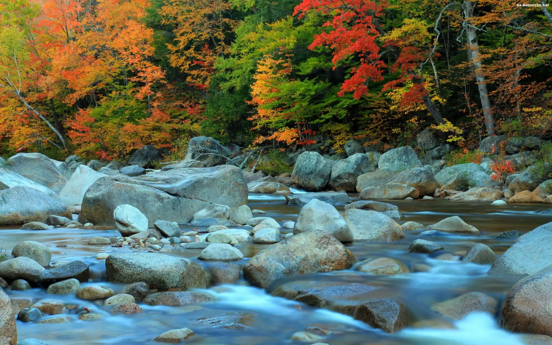Rzeka, Jesień, Kamienie, Las na Komórkę