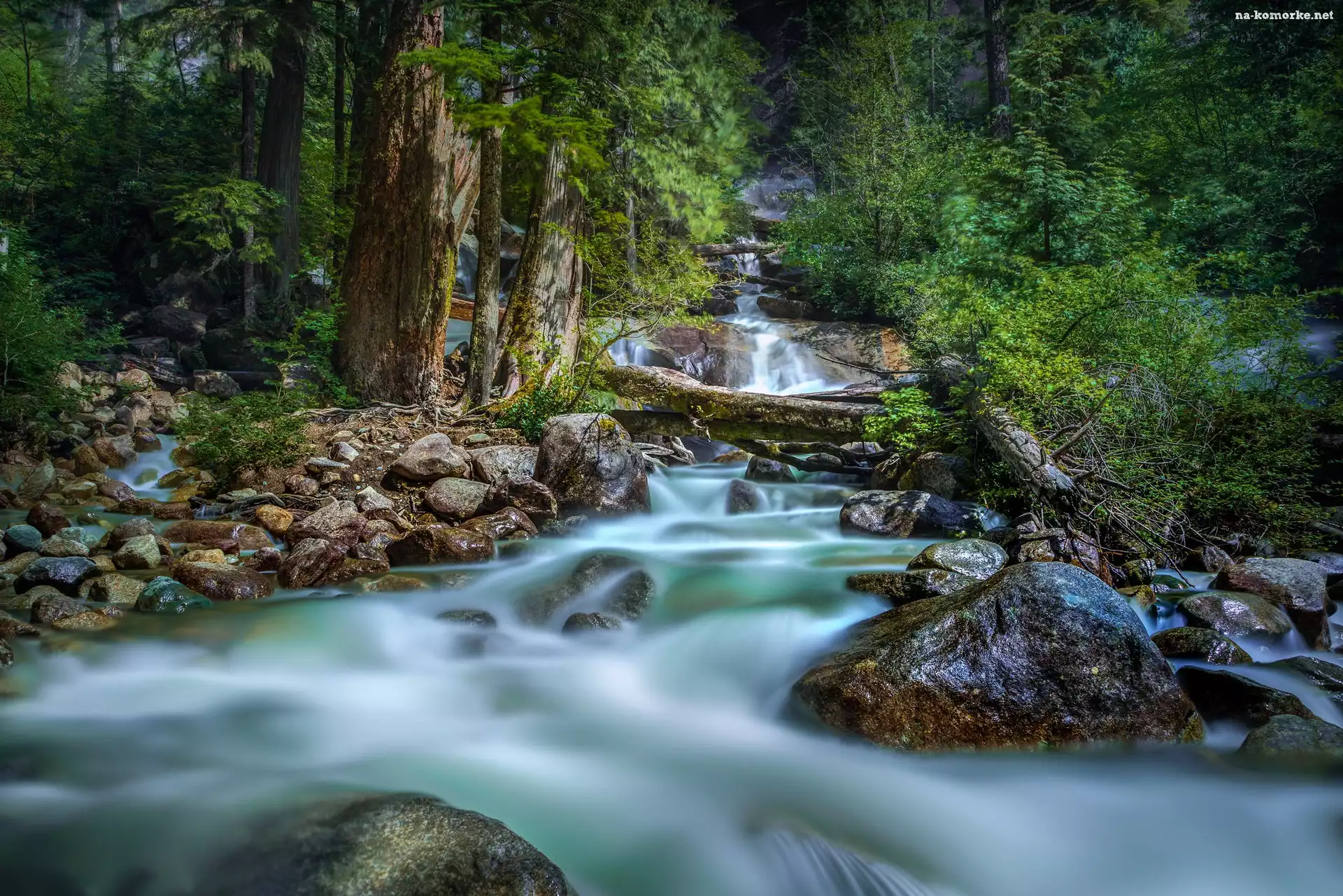 Rzeka, Roślinność, Kamienie, Las na Komórkę