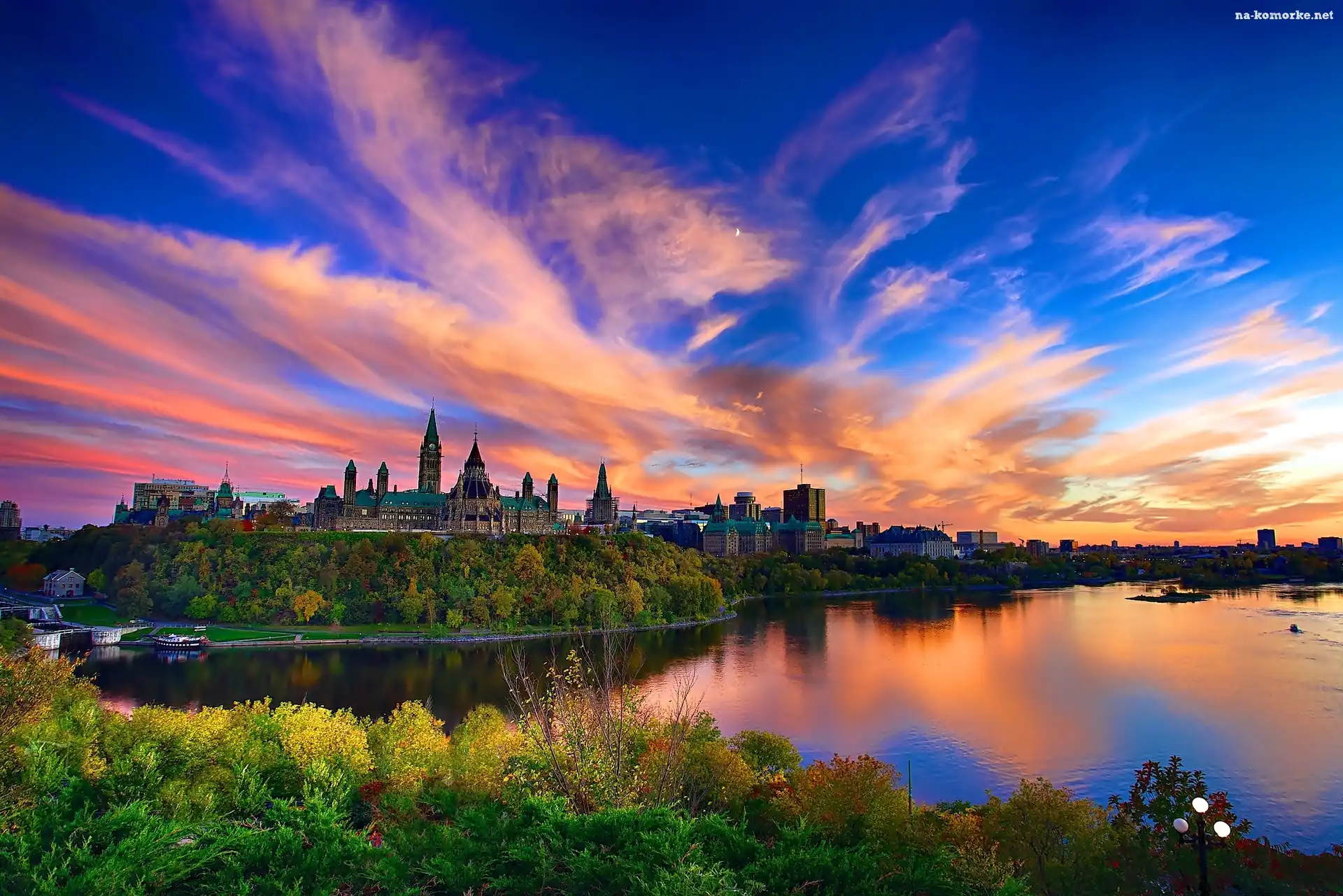 Kanada, Rzeka, Ottawa, Zachód Słońca, Parlament Hill na Komórkę