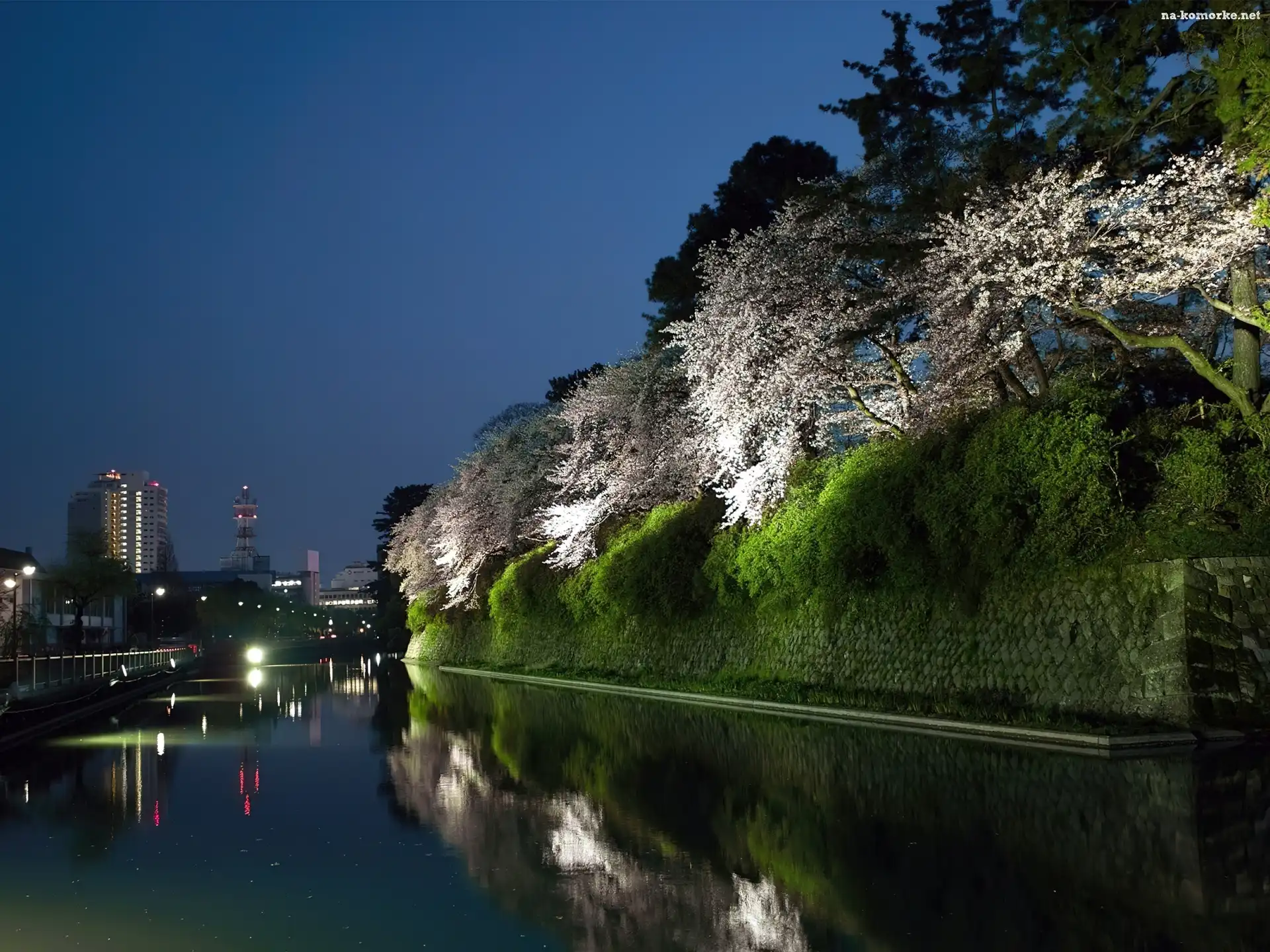 Rzeka, Noc, Kanał, Miasto na Komórkę