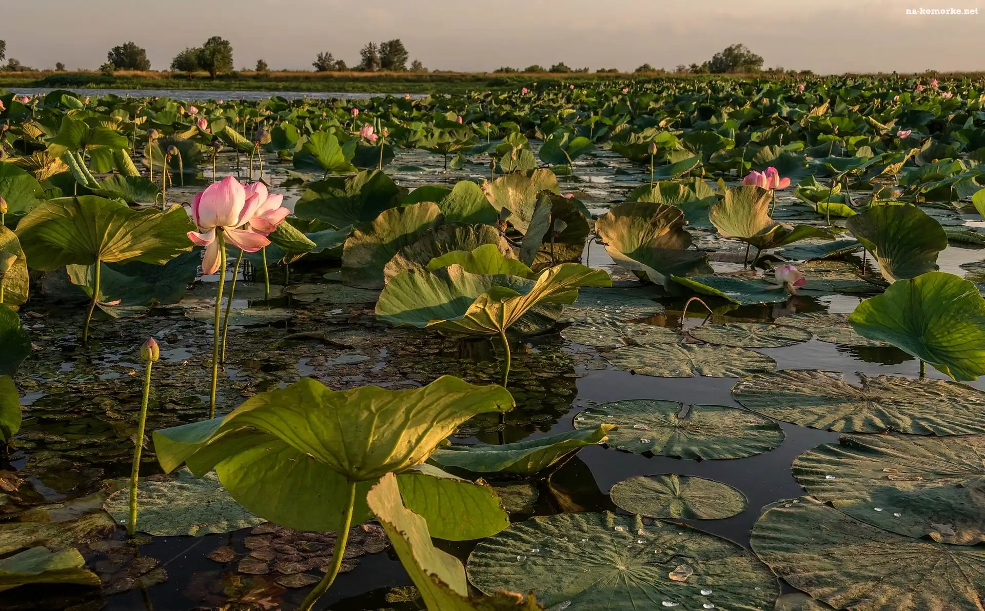 Rzeka, Listki, Kwiaty, Lotosy na Komórkę