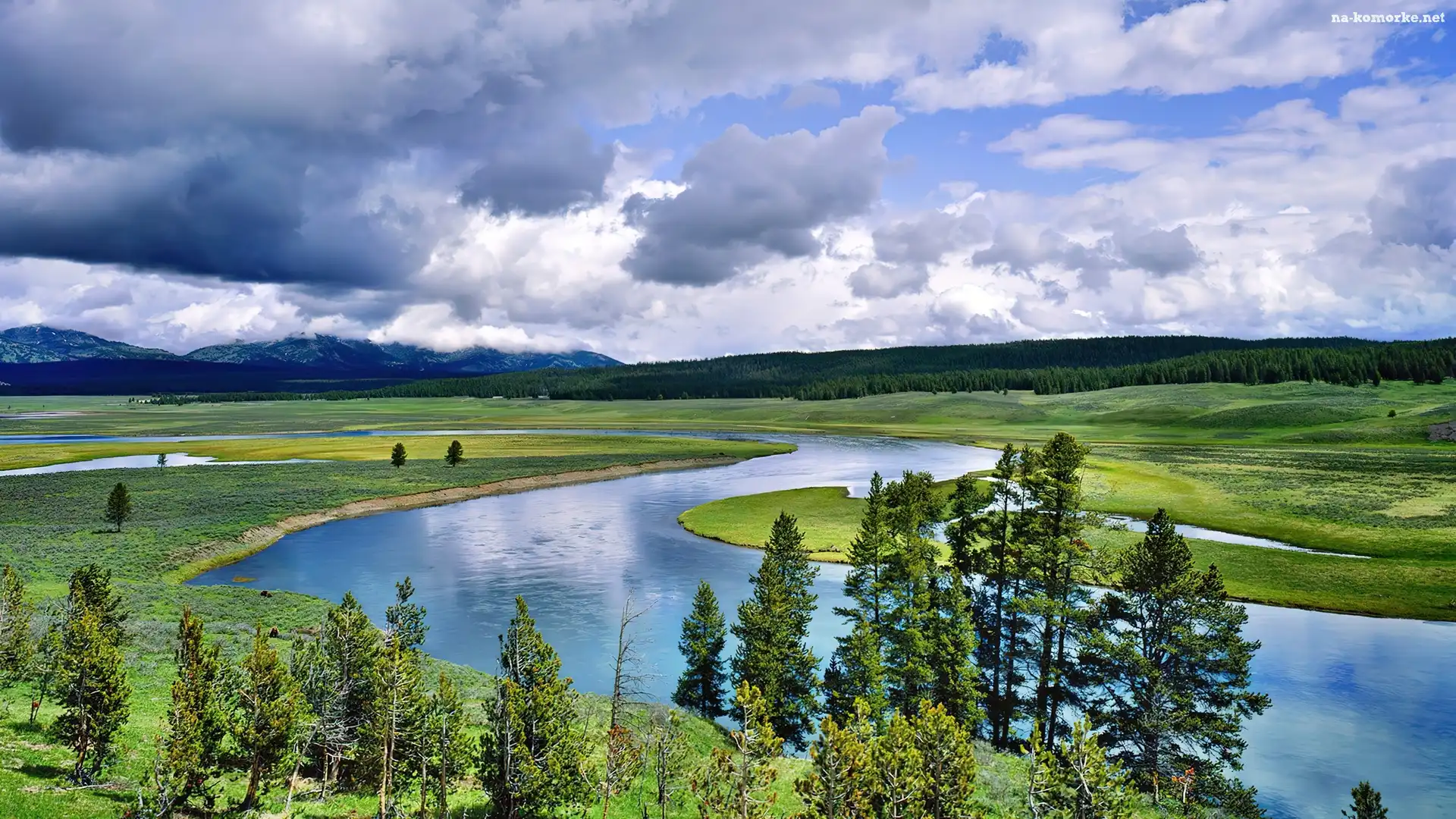 Rzeka, Chmury, Las, Góry na Komórkę