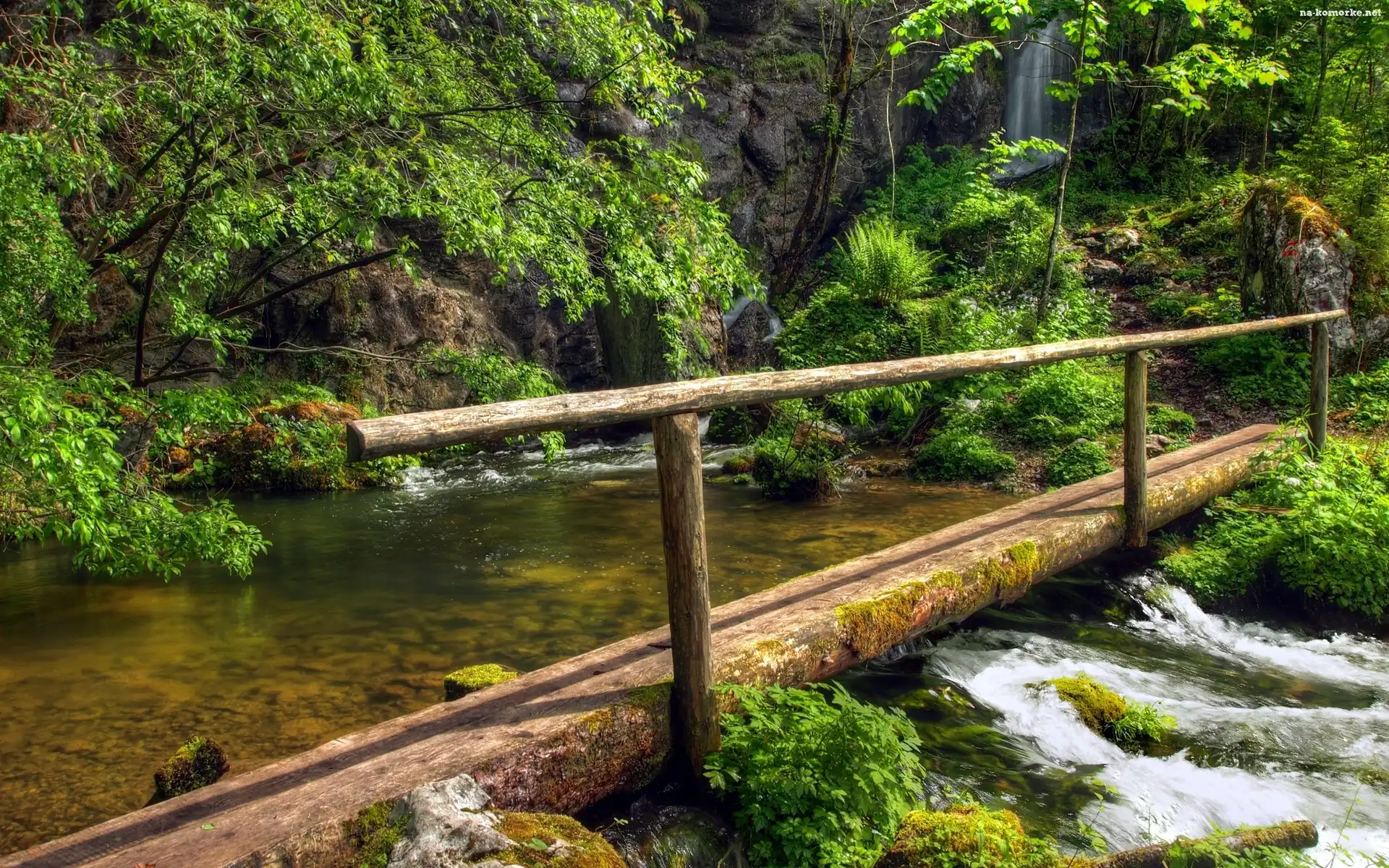 Rzeka, Ścieżka, Las, Kładka na Komórkę