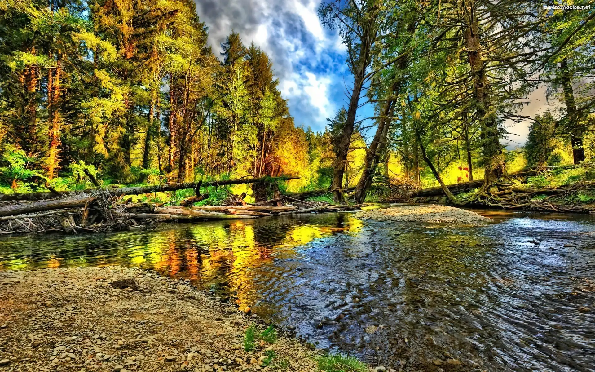 Rzeka, Pnie, Las, Powalone na Komórkę