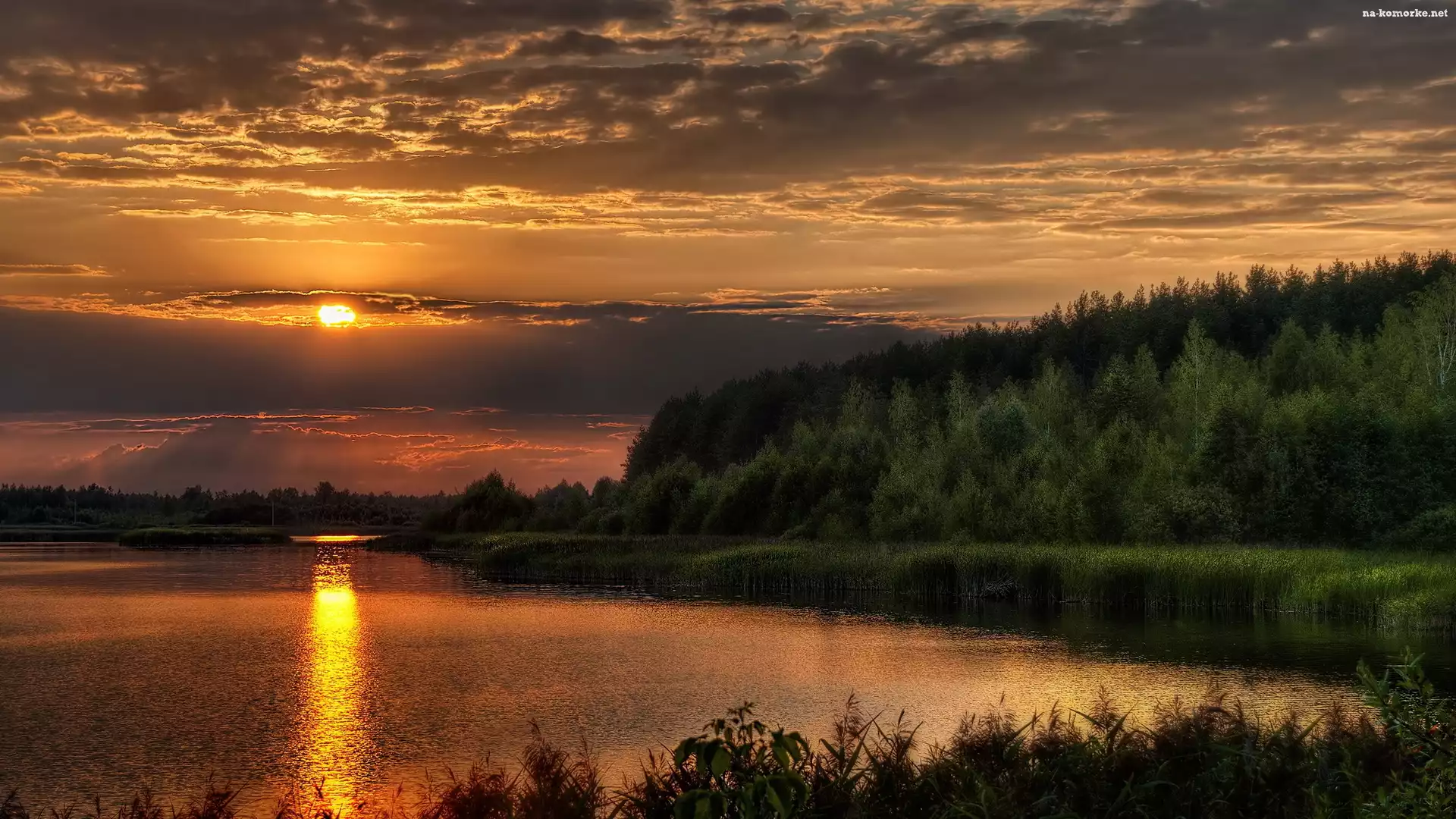 Rzeka, Słońca, Las, Zachód na Komórkę