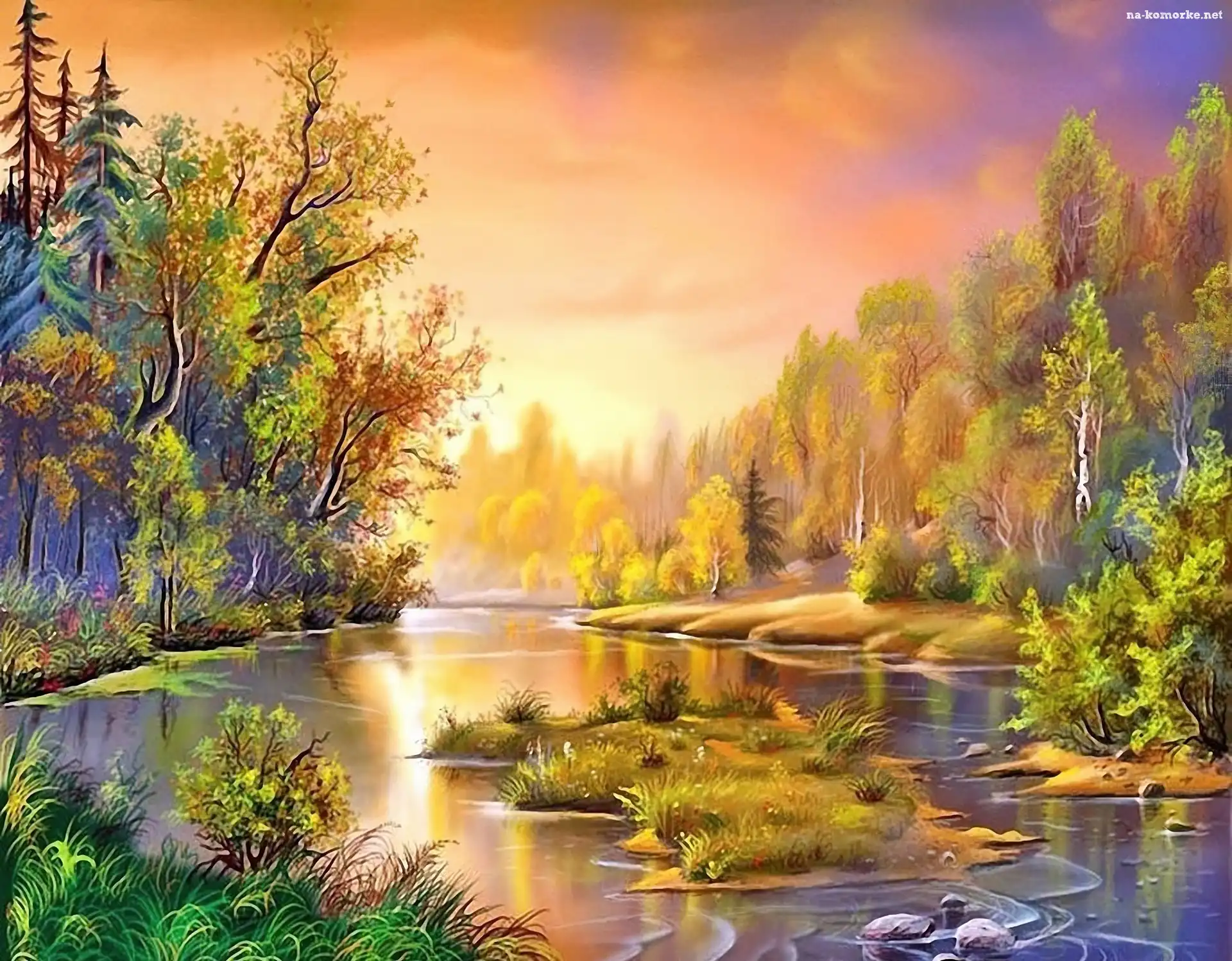 Rzeka, Słońca, Las, Zachód na Komórkę