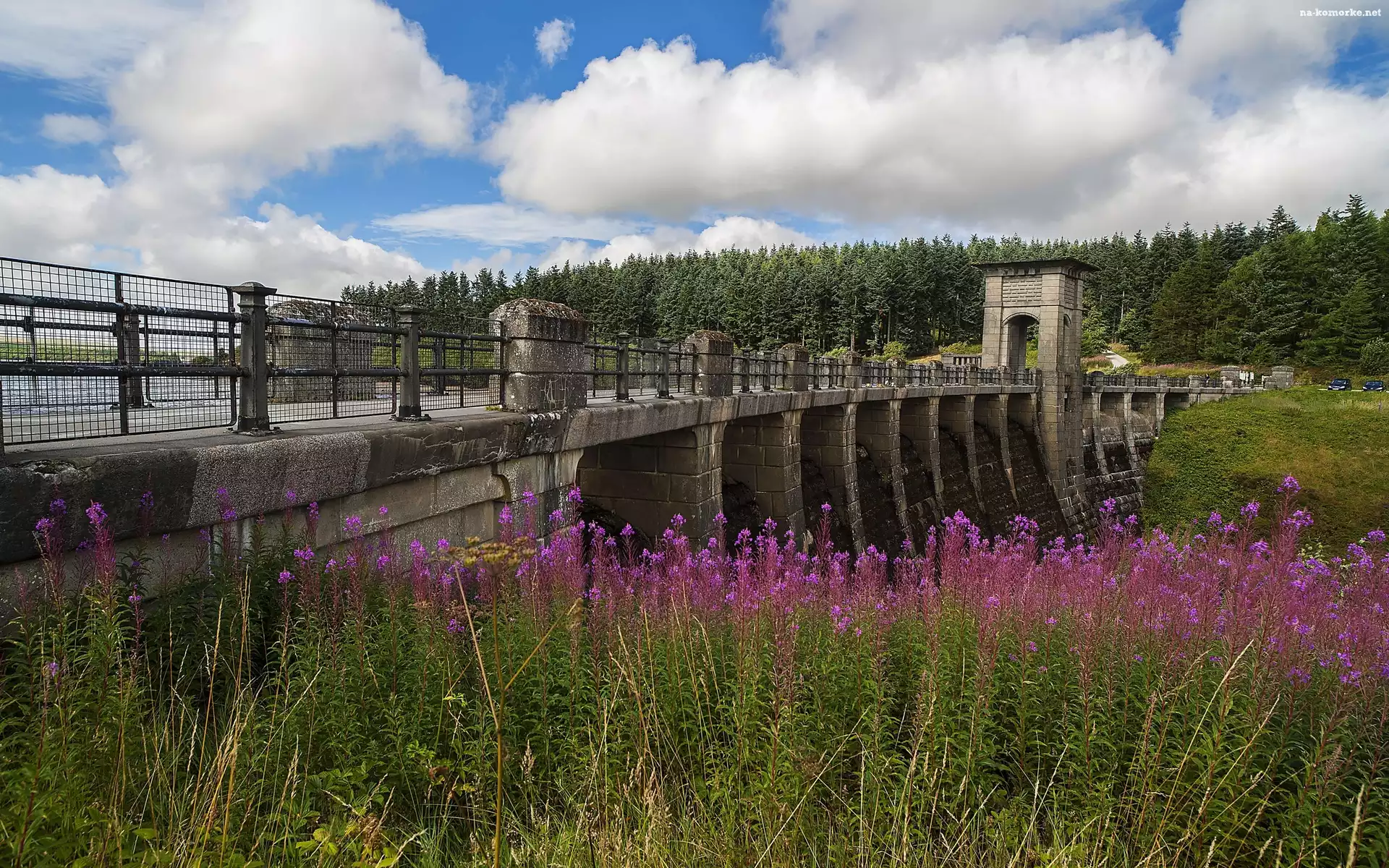 Rzeka, Tama, Las, Kwiaty na Komórkę