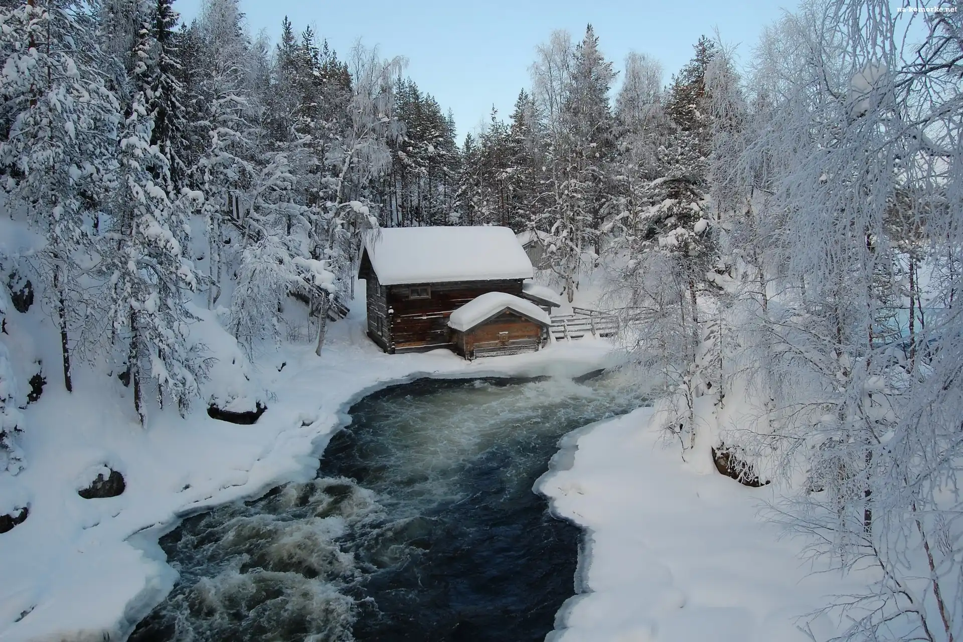 Rzeka, Zima, Las, Dom na Komórkę