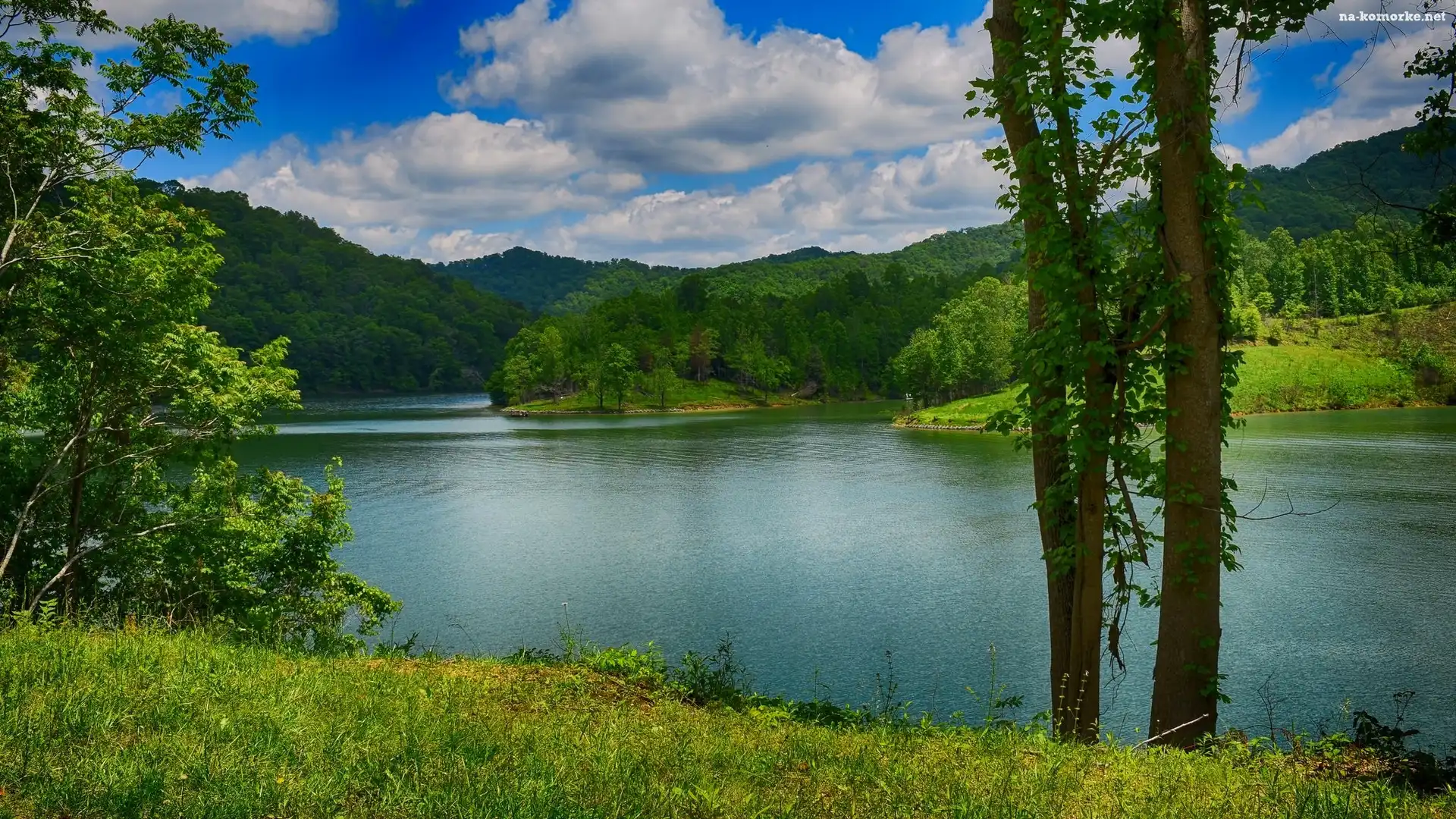 Rzeka, Drzewo, Lasy, Obłoki na Komórkę