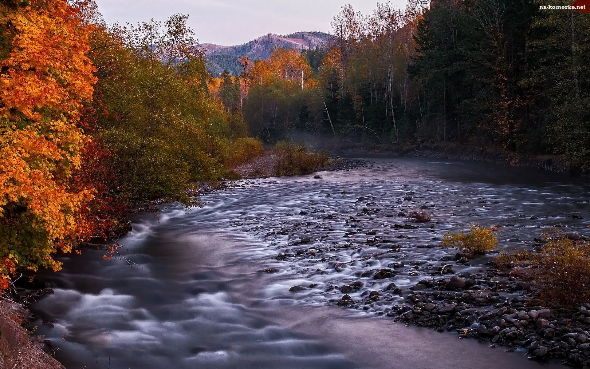 Rzeka, Jesień, Lasy, Góry na Komórkę