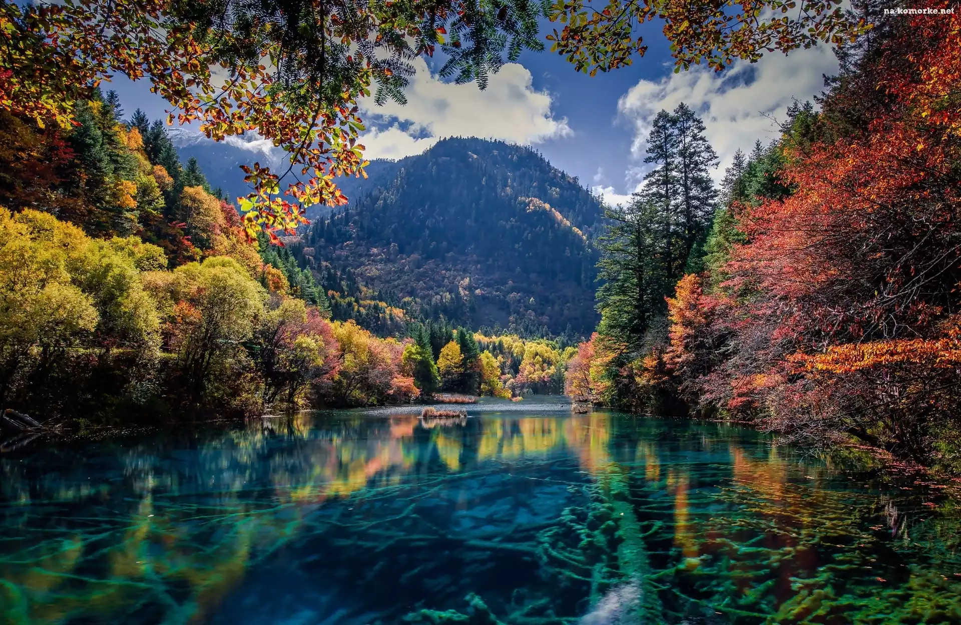 Rzeka, Jesień, Lasy, Góry na Komórkę