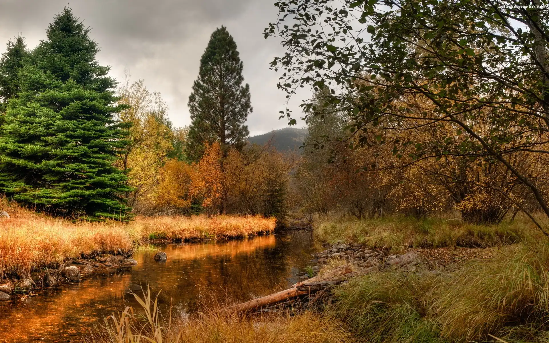 Rzeka, Jesień, Lasy, Góry na Komórkę