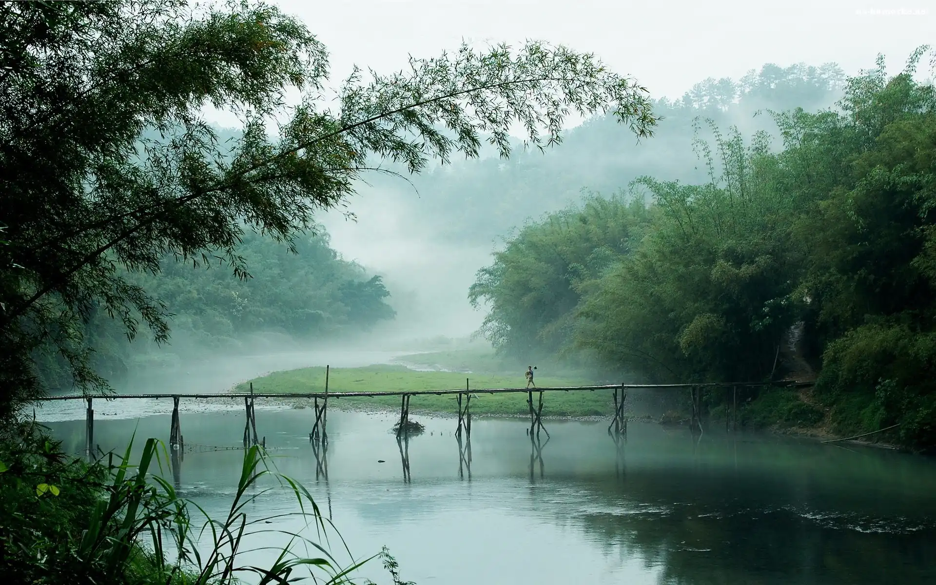 Rzeka, Mgła, Lasy, Most na Komórkę