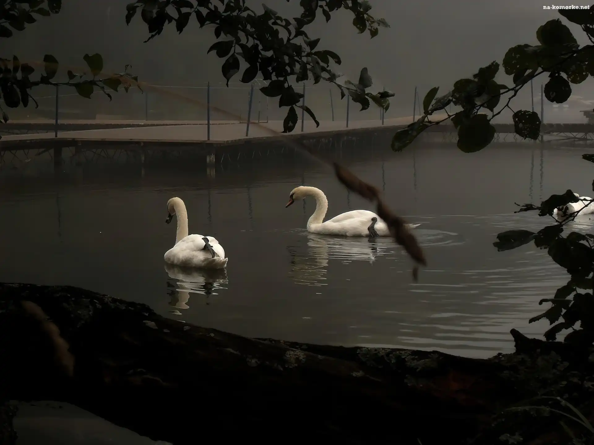 Łabędzie, Mgła, Rzeka, Pomost na Komórkę